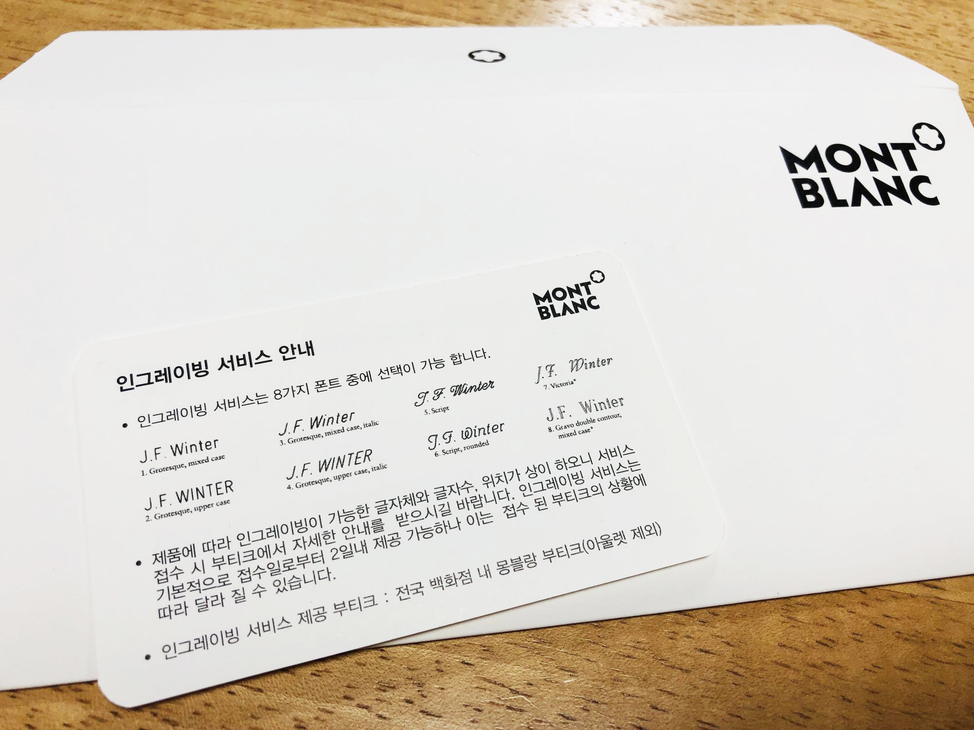 주로 이름을 만년필이나 볼펜에 많이 새기는데 개인적으로는 인그레이빙 서비스를 받지 않기로 했다. 그냥 깔끔하게 있는 그대로 사용하고 싶어서다. 언젠가 마음이 바뀌면 유료로 각인해야지. 무상 바우처는 유효기간이 정해져 있기 때문이다.