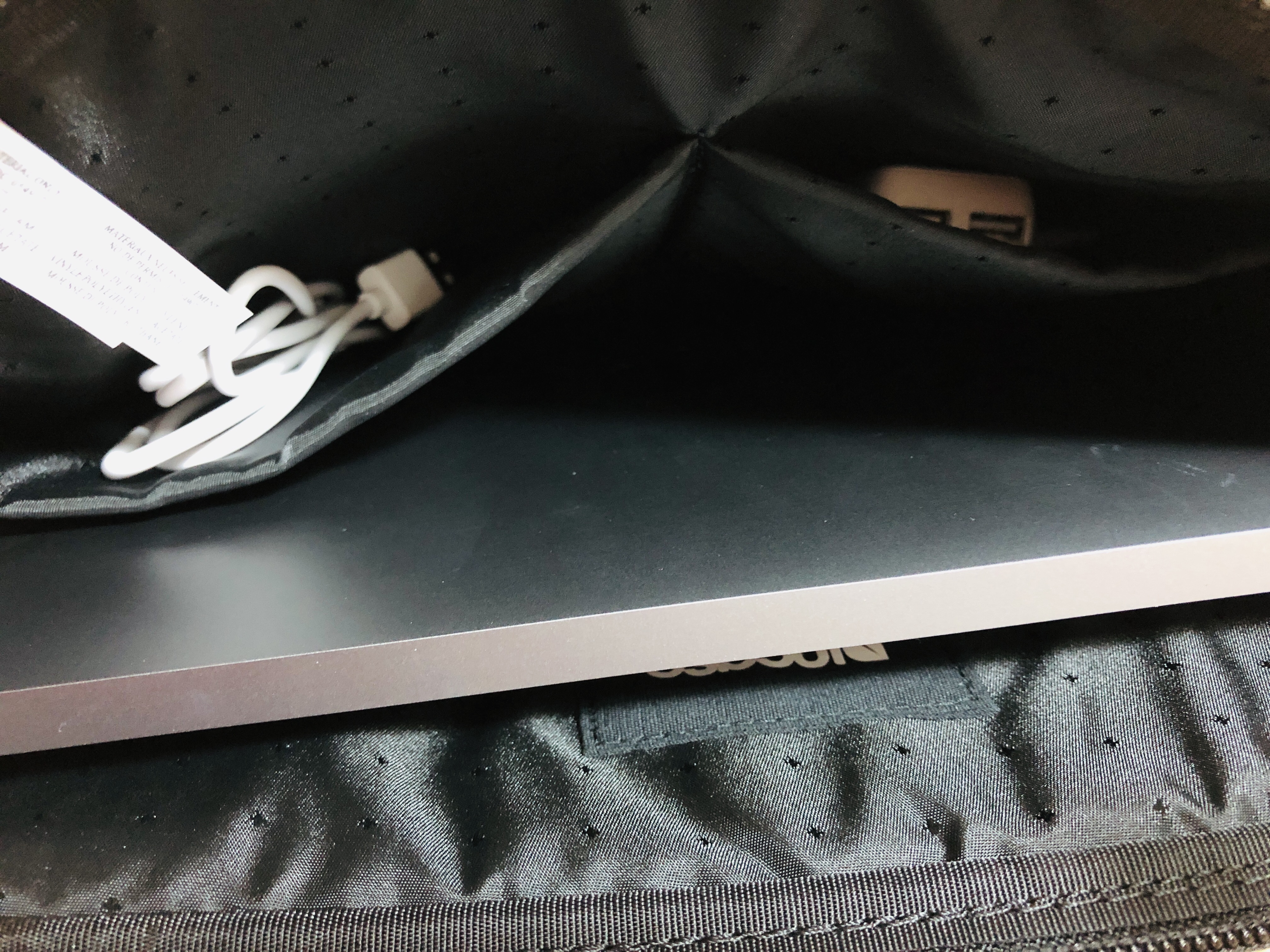 다른 주변기기를 구입하지 않고 있는데 맥북 에어의 기본 구성품인 전원 어댑터와 충전 케이블을 나눠서 넣으면 딱이다.