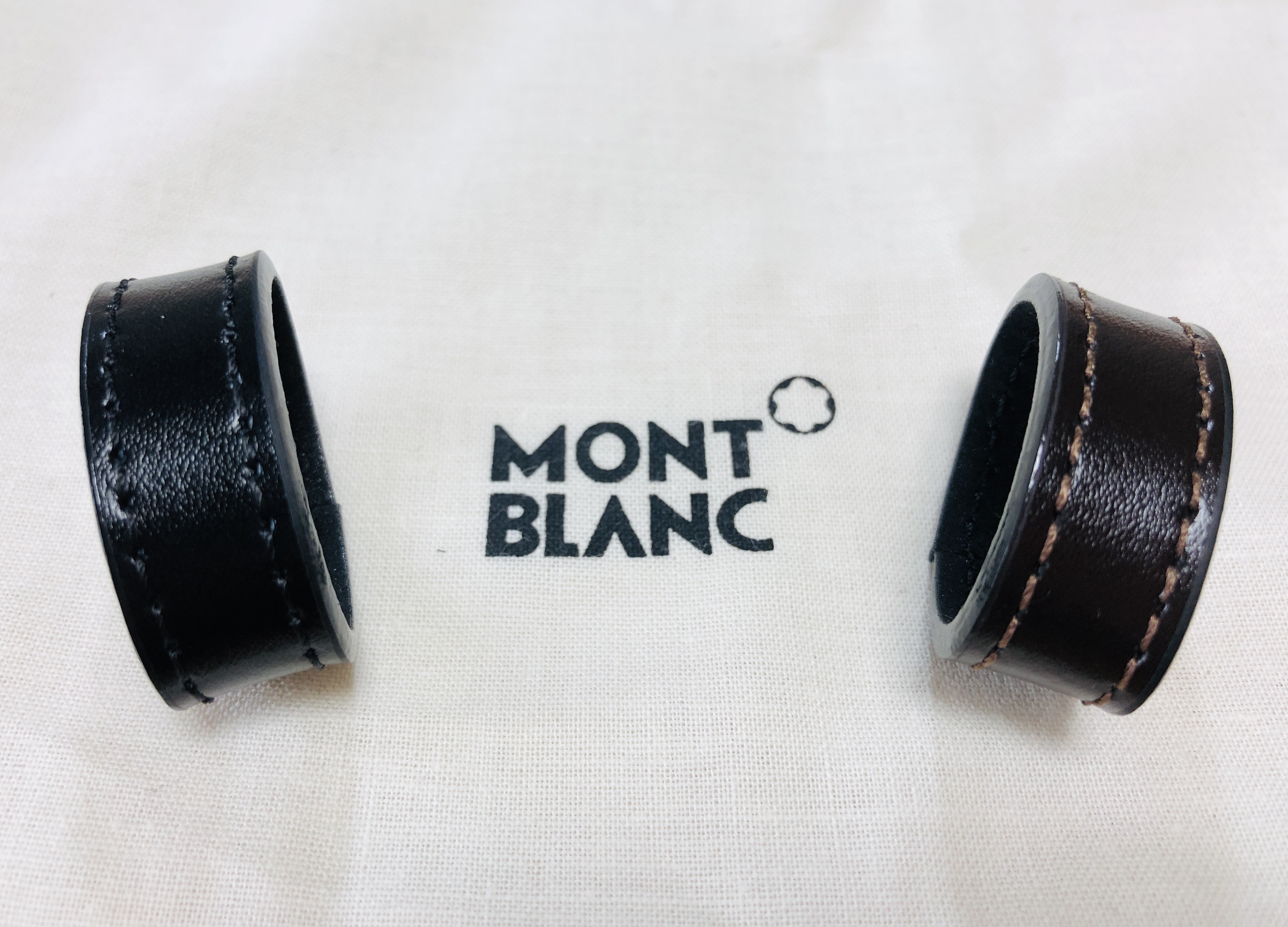 그 안에 들어 있는 두 가지 색상의 벨트 고정 고리. 왼쪽이 그레이니 블랙, 오른쪽이 브라운이다. 처음 열어봤을 때는 몰랐는데 단순한 검정 가죽줄이 아니라 브라운와 그레이니 블랙 양면으로 사용할 수 있는 리버시블 레더 스트랩이었다. 더 좋은데? 주로 몽블랑스러운 검은색 면을 쓰겠지만 가끔은 브라운도 좋겠다.