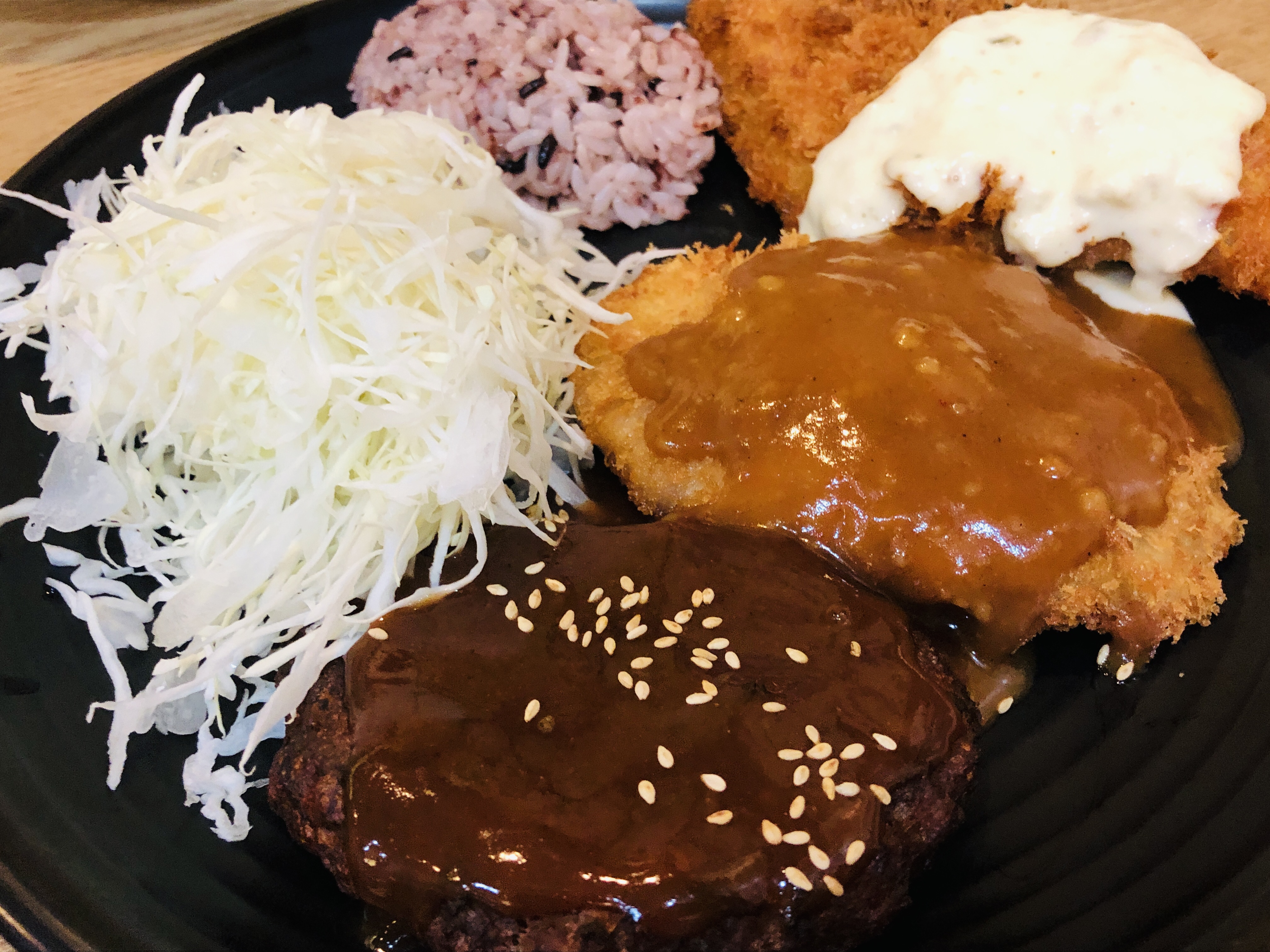 내가 좋아하는 게 다 모였다. 양배추까지! 밥은 메밀국수를 시키지 않았으면 더 달라고 했을 것이다. 그런데 이렇게 세 종류가 나오면 다들 어떤 것부터 먹는지 궁금. 먹는 순서에 따라 맛의 차이가 있을까? 개인적으로는 돈까스-함박스테이크-생선까스 순서로 먹었다. 다음에는 새우까스도 먹어봐야지.
