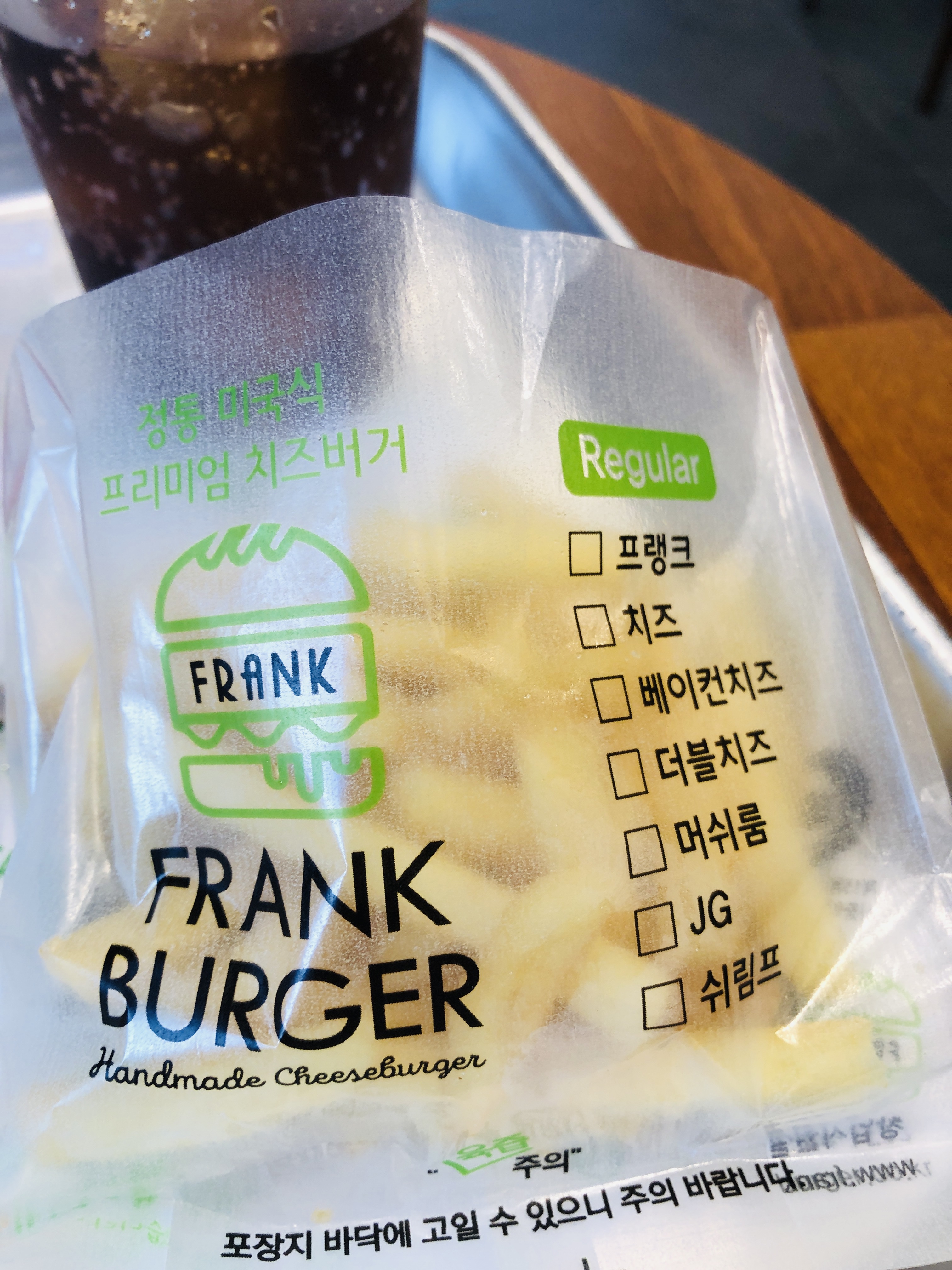 기본적으로 맥도날드를 좋아하는데 최근 수제버거가 종종 먹고 싶다. 그럴 때 프랭크버거가 괜찮을 듯하다. 요즘 프랜차이즈 수제버거 브랜드가 다수 등장하고 있는데 새로운 수제 치즈버거를 계속 경험하고 싶다.