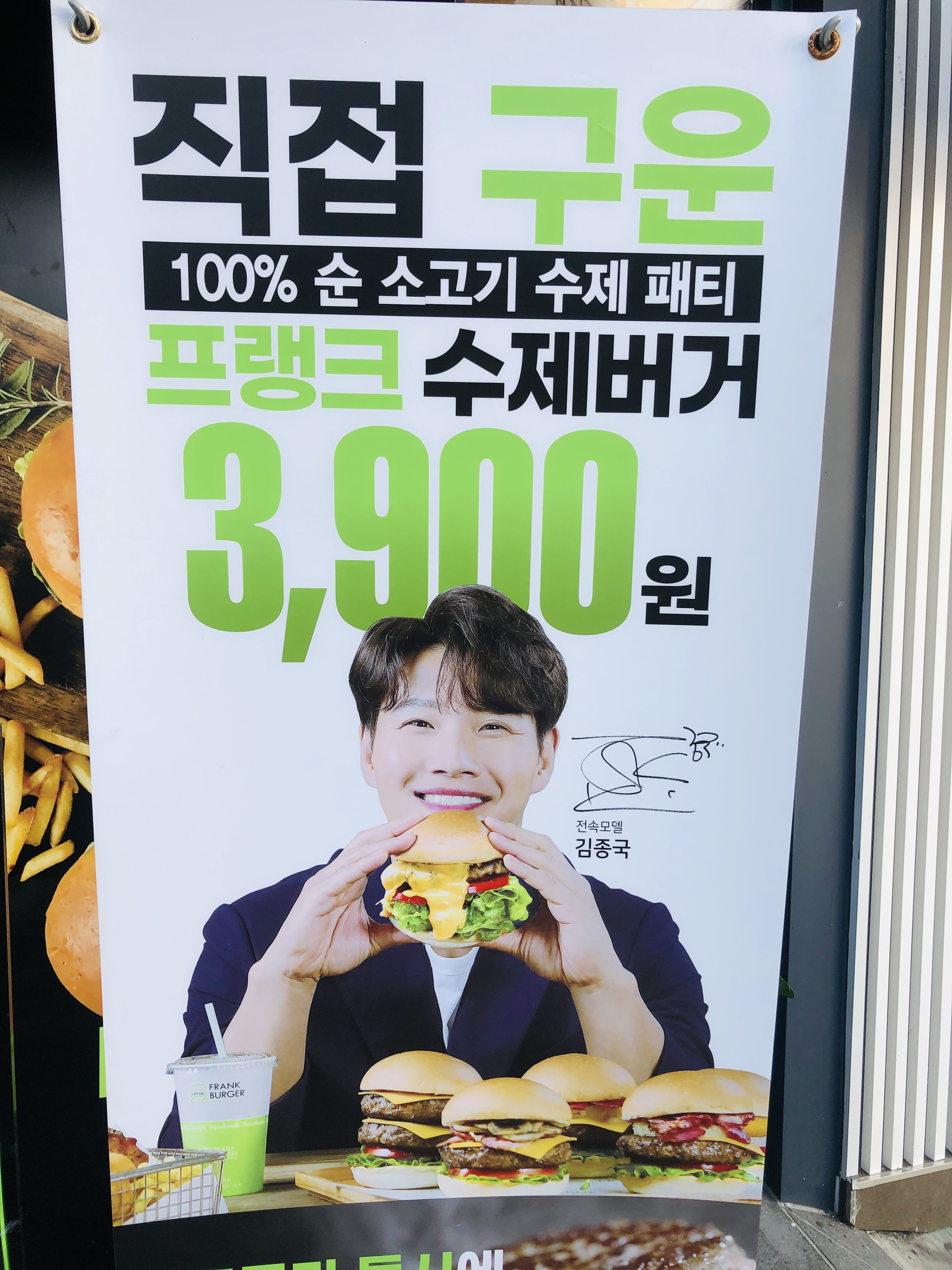 프랭크버거는 광고 모델 때문에 김종국버거로도 잘 알려져 있다. 안그래도 한 번 먹어보고 싶었는데 잘됐다.