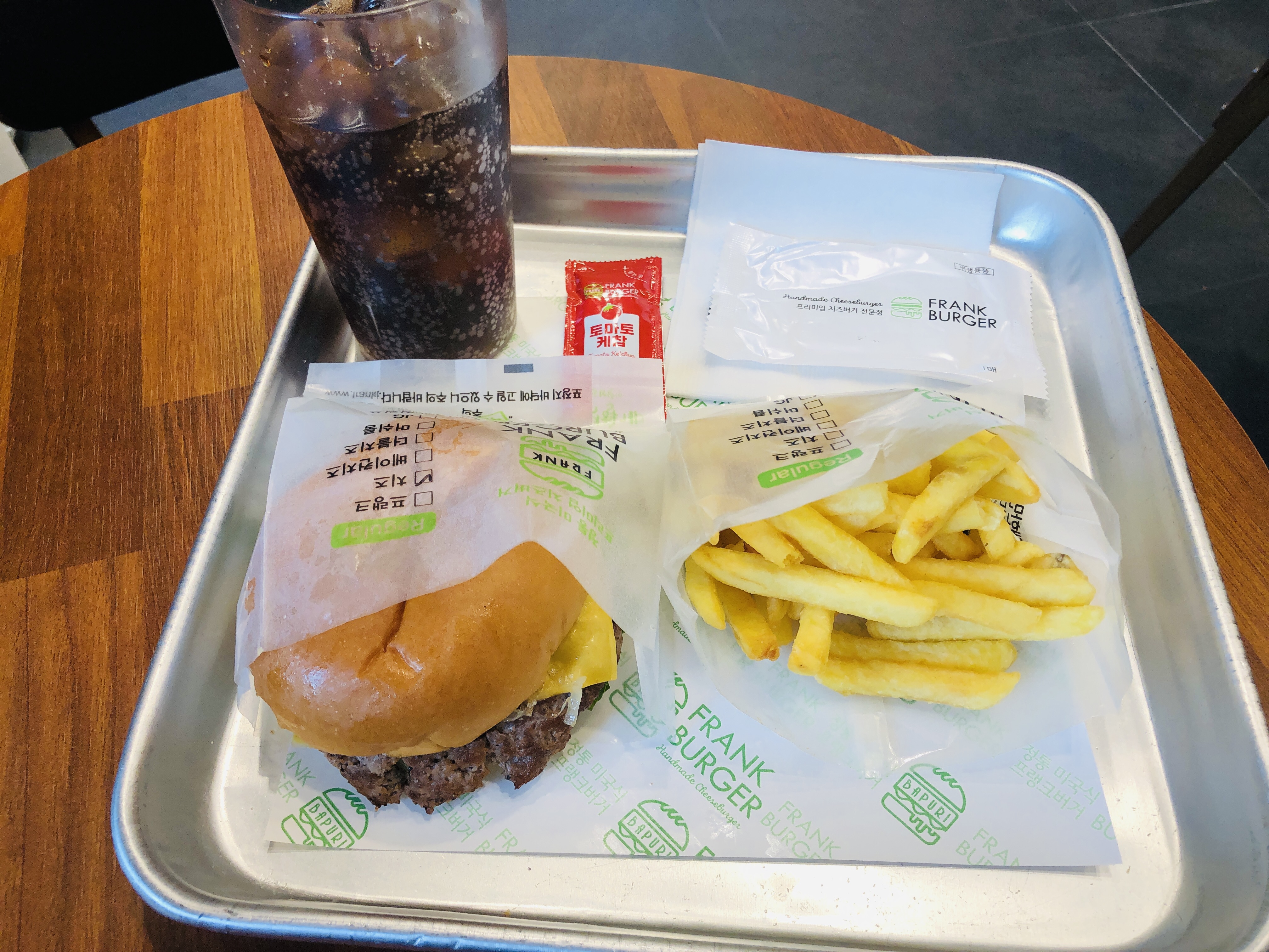 종류가 너무 다양한 것보다 선택과 집중이 좋다. 보통 맛집의 공통점. 가장 기본 햄버거는 프랭크버거인데 너무 헐빈한 듯하여 치즈버거세트를 선택했다. 그리고 프랭크버거의 대표 버거가 치즈버거니까.