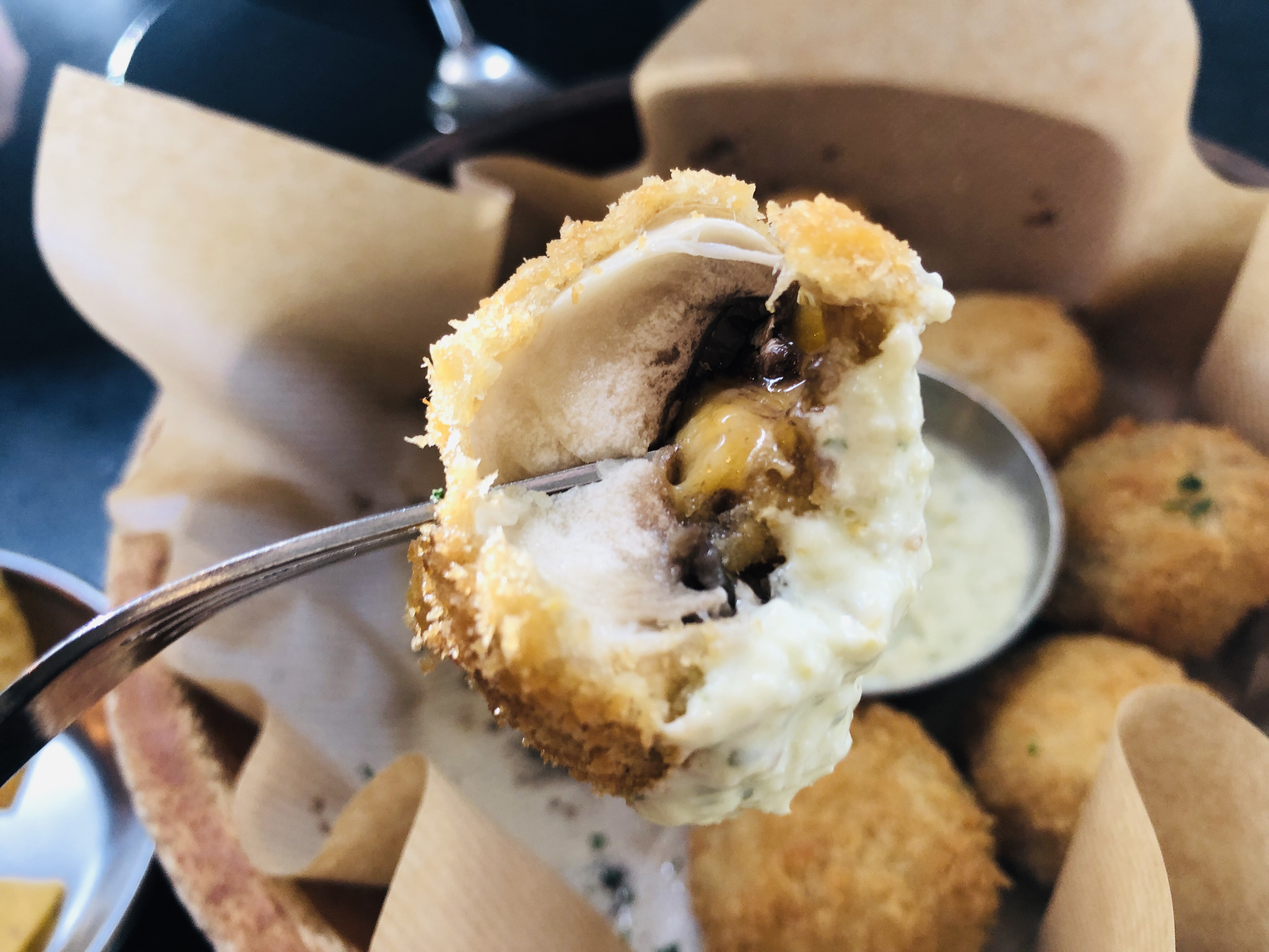 간단하게 말하면 버섯 튀김인데 속에 치즈가 들어있어서 겉바속찐의 맛을 즐길 수 있다. 더하여 새우까스나 생선까스와 곁들이는 타르타르소스 같은 소스에 찍어 먹으면 치즈 인 더 머쉬룸의 맛이 배가된다.