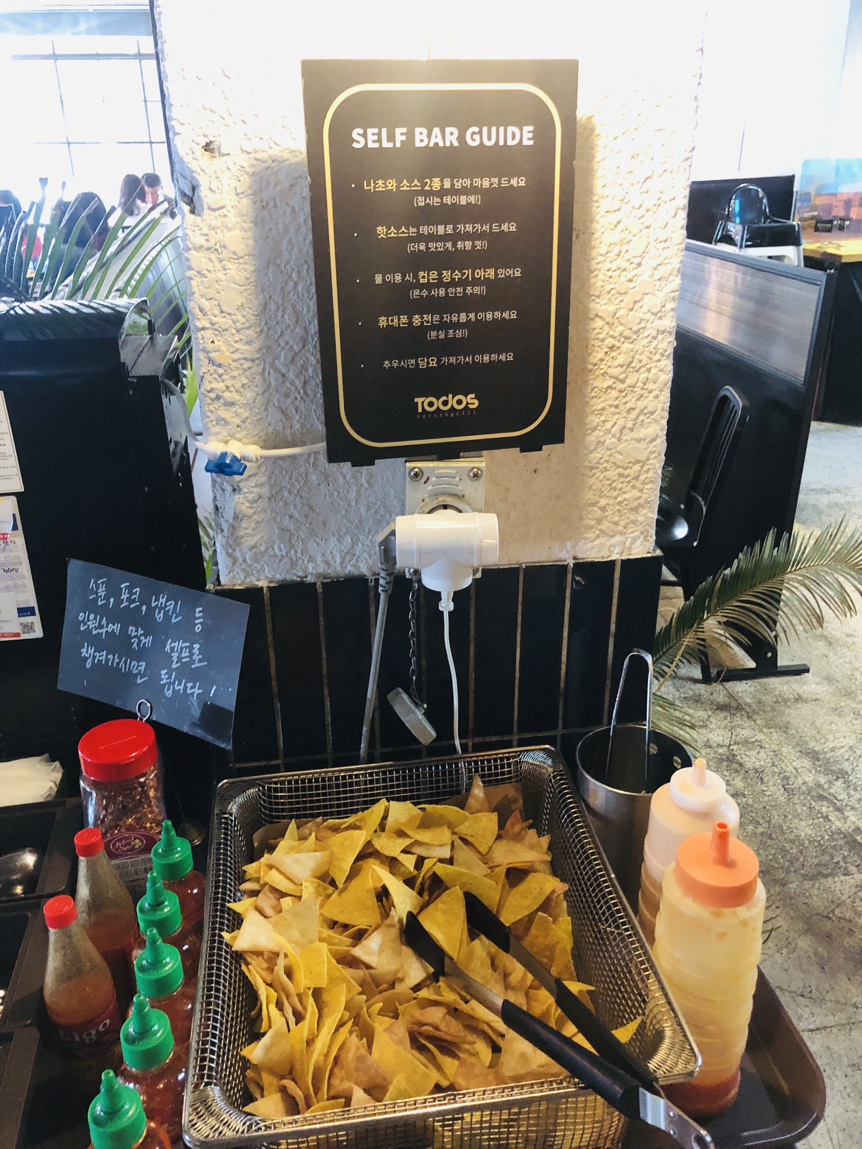 주문 후 나초 셀프바 이용. 그 외 다양한 서비스 이용이 가능해서 좋았다.