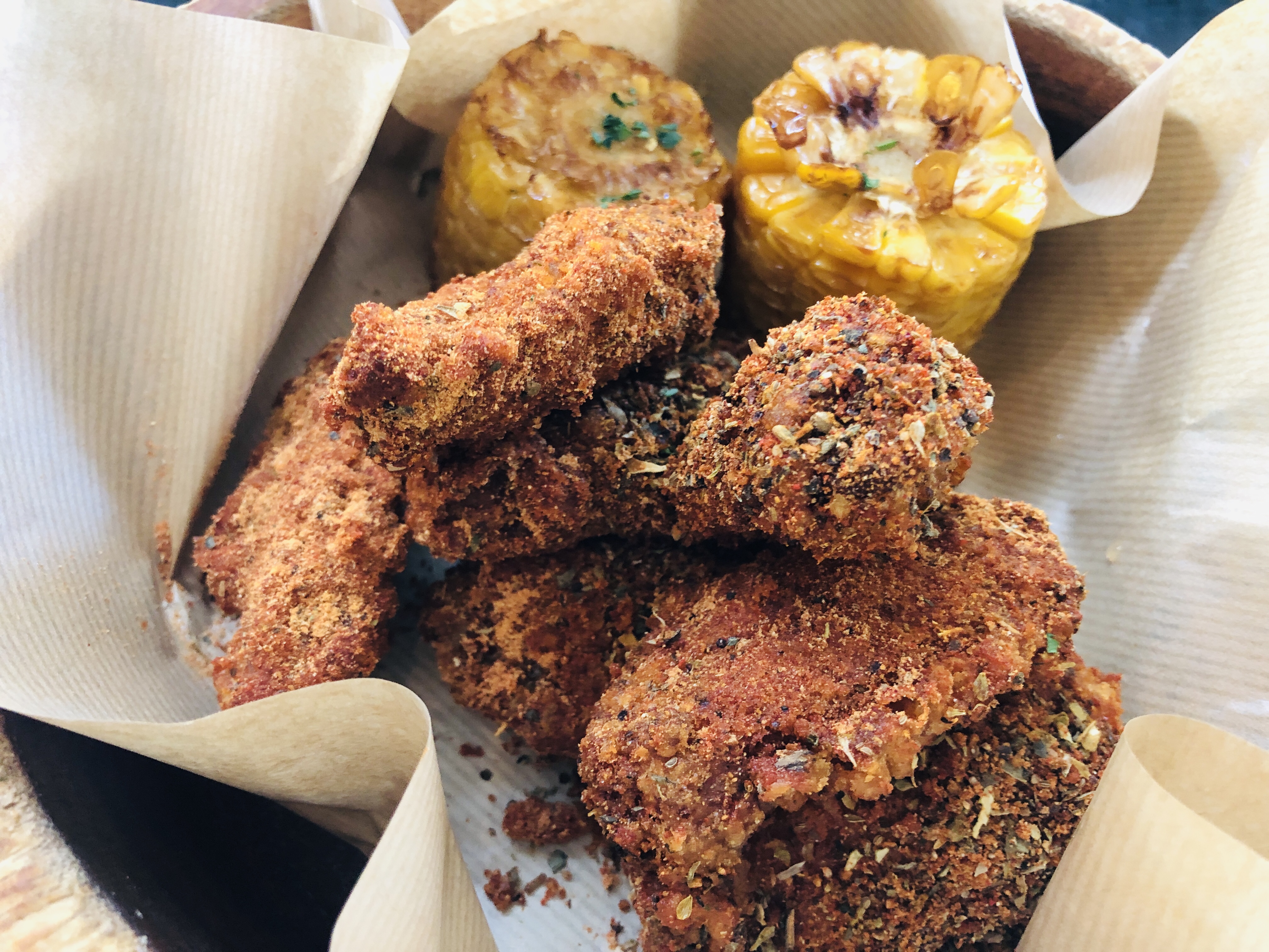 타코 먹으면서 맛있어서 아쉬움에 다른 음식을 한 개 더 시켰다. 크레올 윙(하프)이었는데 핫윙을 생각하면서 주문했는데 양념(시즈닝)이 완전 색달랐다. 딱 향과 맛이 이국적이면서 화끈했다. 맛있긴 했는데 개인적으로 두 세 조각 정도 먹으면 적당할 듯했다. 후두둑 떨어지는 시즈닝도 개인 취향이 아니고. 일단 워낙 치킨을 좋아하니까 다 먹었는데 다음에는 갈릭 윙을 먹어보려고 한다. 구운 옥수수는 여전히 맛있다. 타코까지 모두 먹고 보니까 배불렀다. 자꾸 생각나는 토도스.
