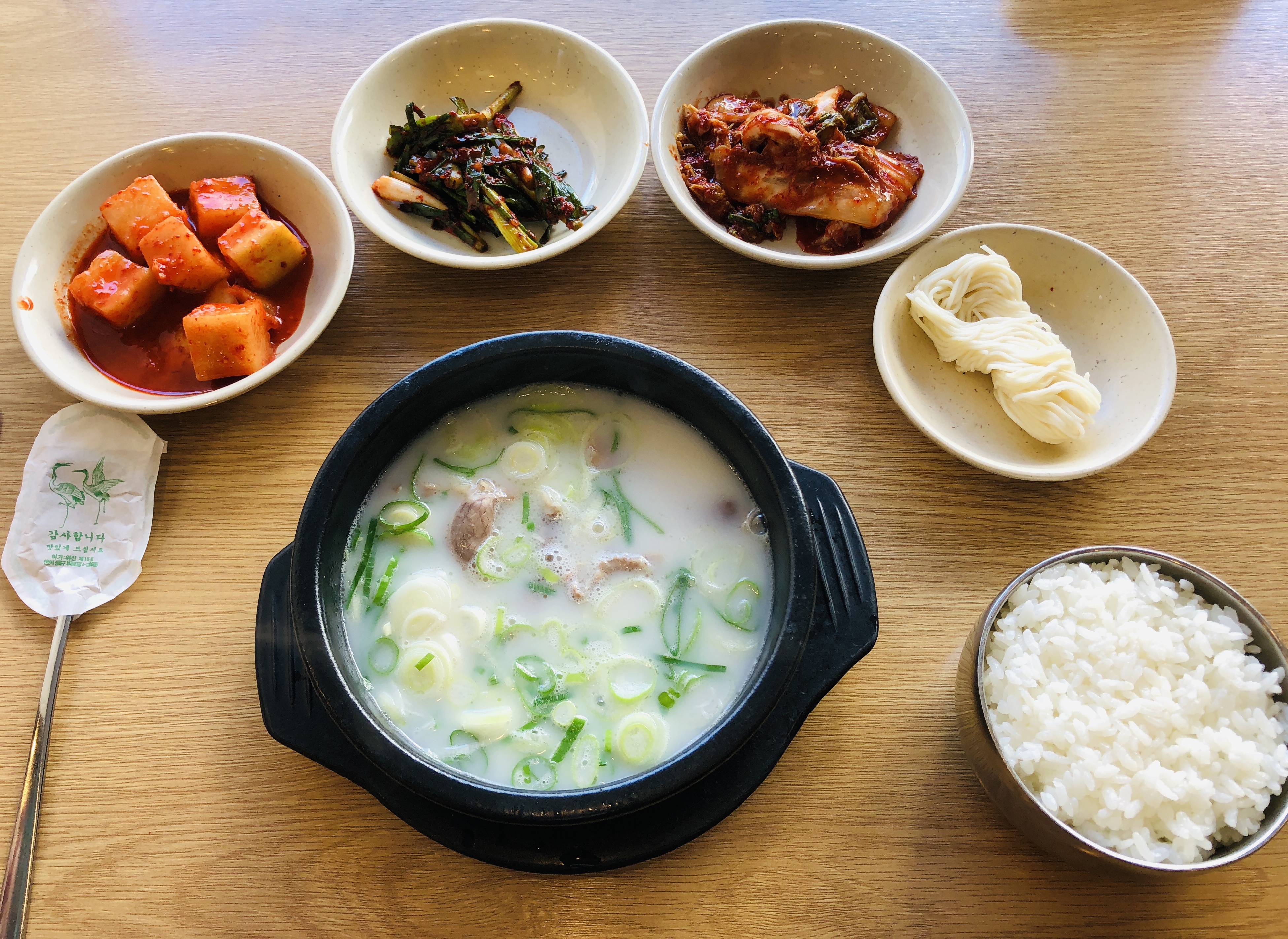 기본 11,000원짜리 설렁탕. 평범해 보이는 구성이지만 내가 평소 그토록 원하던 상차림이다. 자질구레하거나 구색용 반찬없이 소면과 김치 3종 구성이 너무 좋았다.