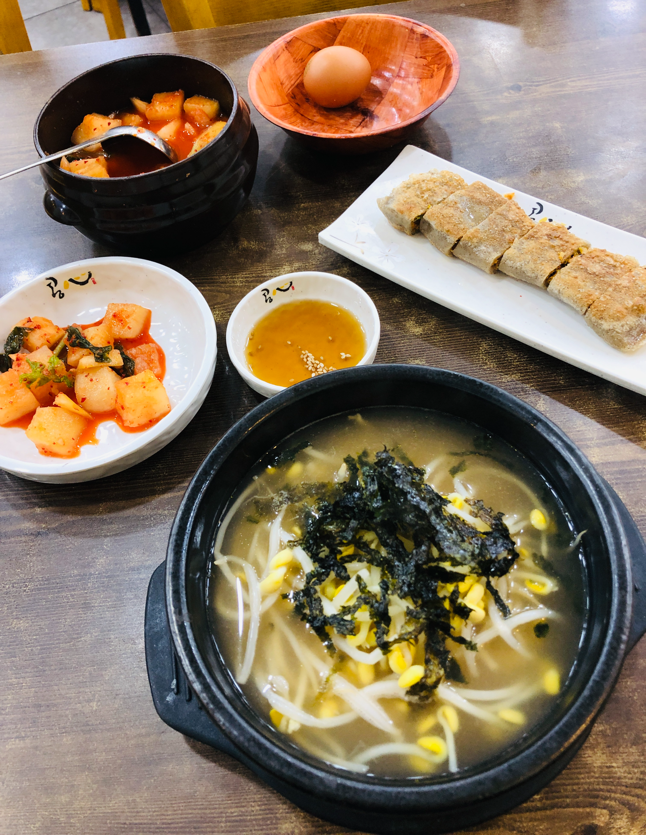 가장 기본 콩나물국밥과 메밀전병 주문.