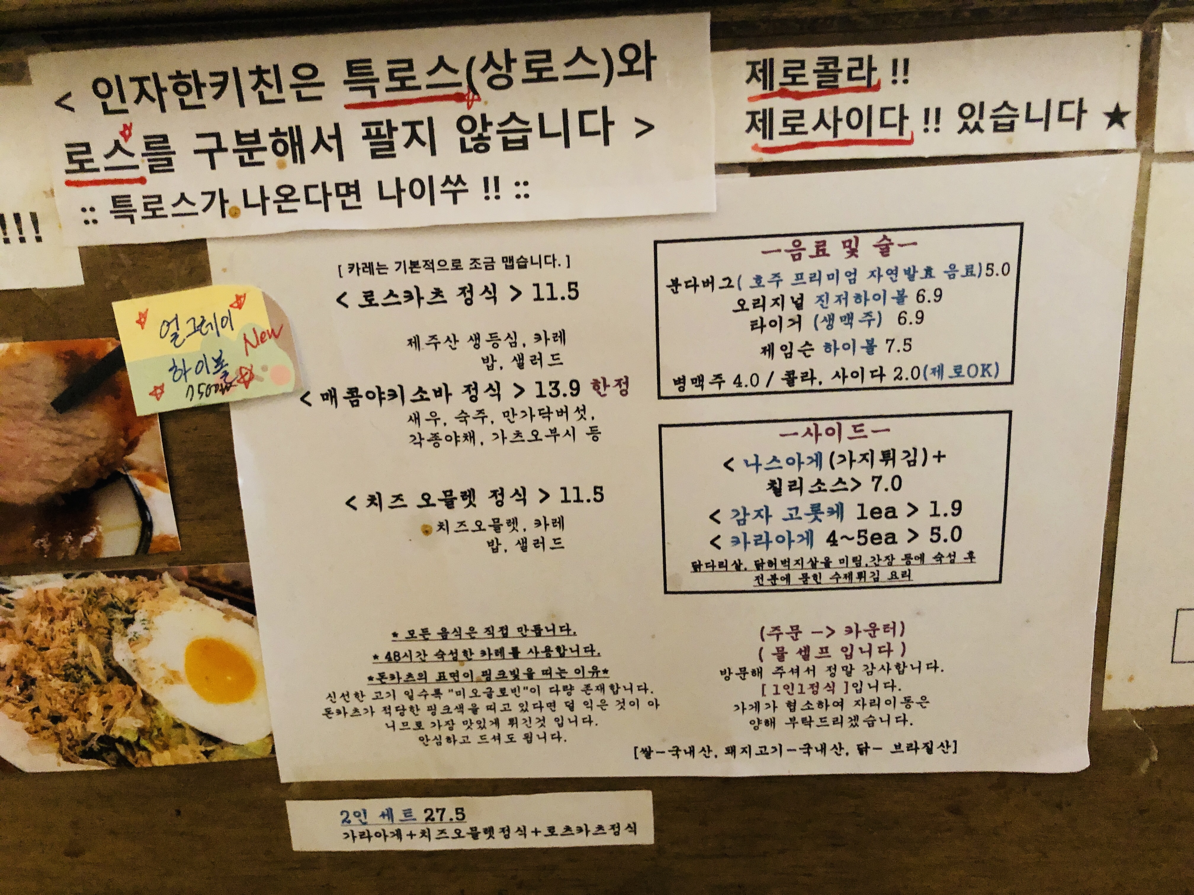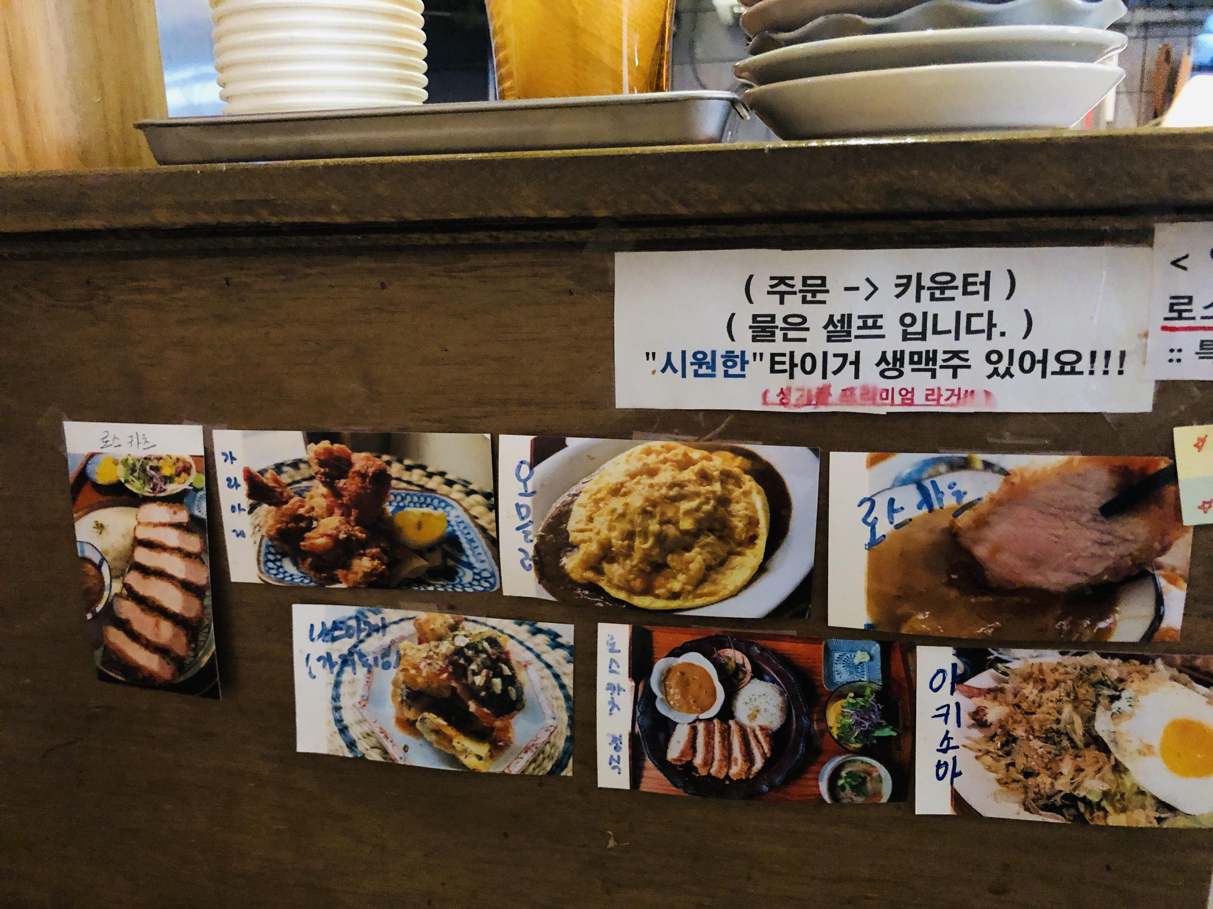 음식 사진을 참고할 수 있어서 좋다. 인자한키친의 대표 음식인 치즈오믈렛 정식과 가지튀김 주문.