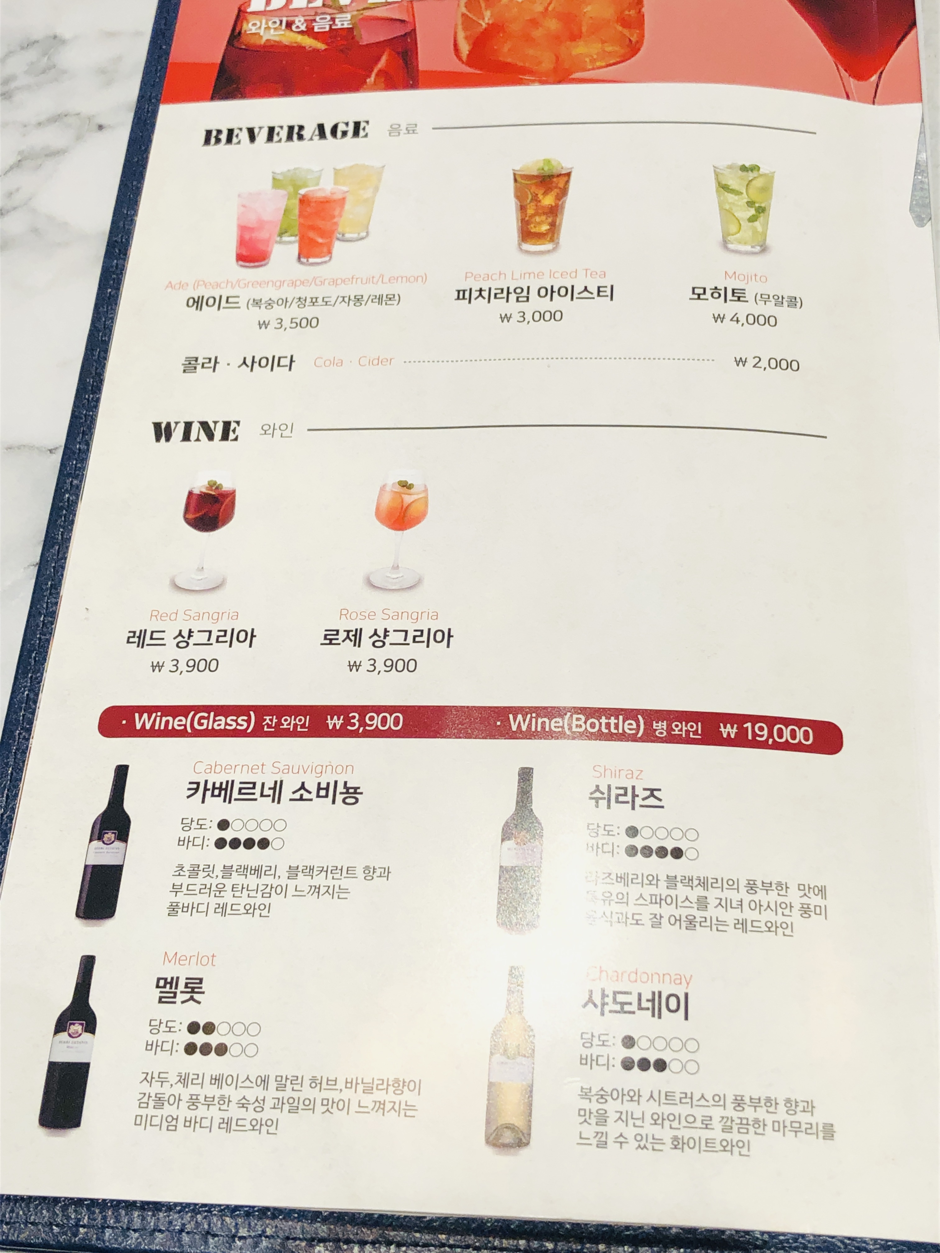 샹그리아나 잔 와인도 저렴해서 부담없이 곁들여 먹을 수 있겠다. 병 와인 자체가 저렴하네.