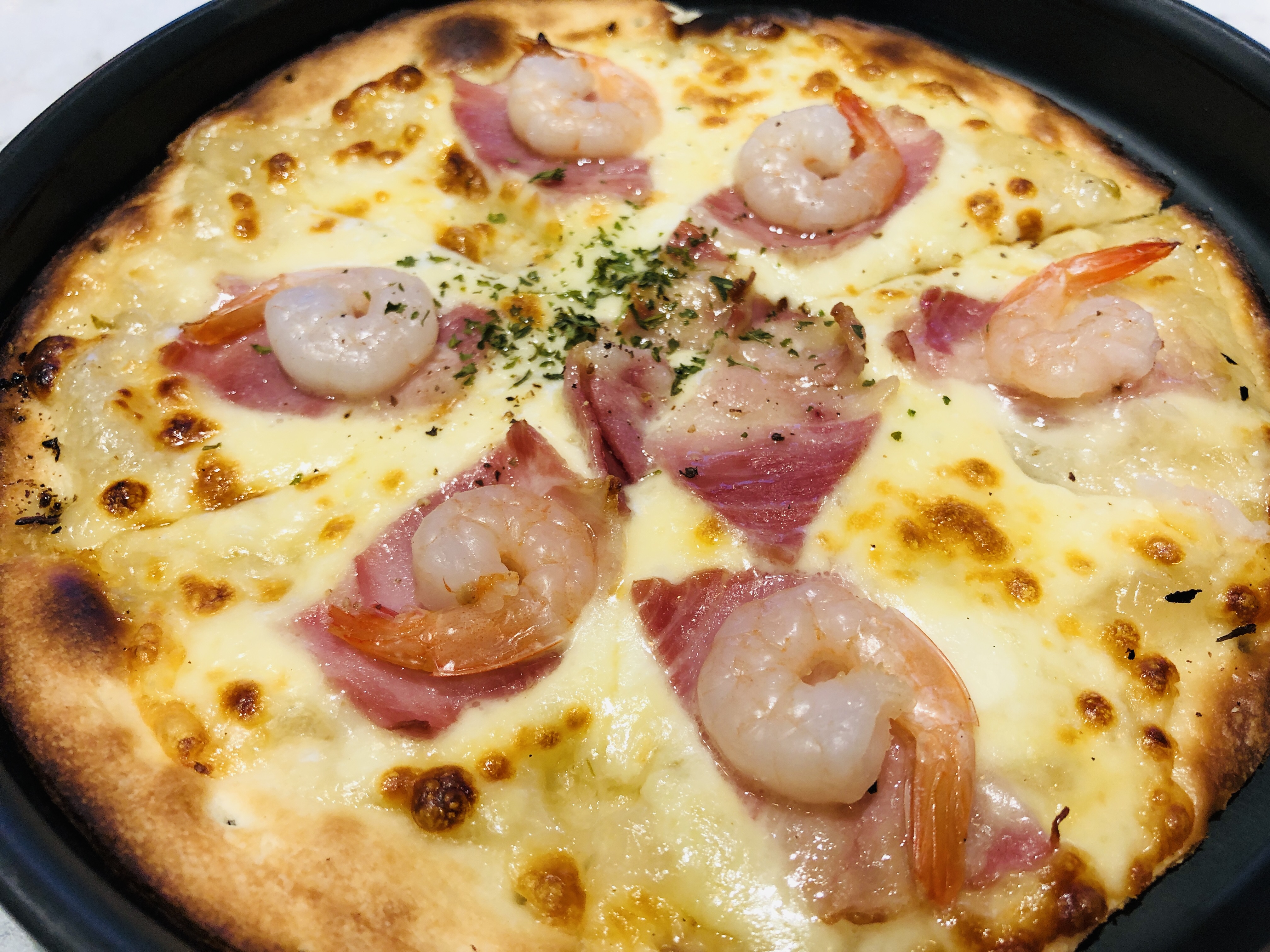 쉬림프베이컨피자도 이름에 충실하게 새우와 베이컨이 한 조각씩 야무지게 장식되어 있었다. 정말 얇고 작은 미니피자였는데 도우의 바삭함도 괜찮았고 혼자 먹기 딱 좋았다. 살짝 단맛은 내 취향이 아니었지만 오히려 식상하지 않게 다 먹을 수 있게 해주는 원동력이 되었다. 요즘은 피자도 유명 브랜드에서 사먹으려면 부담스러운 가격인데 여기는 괜찮은 듯하다.