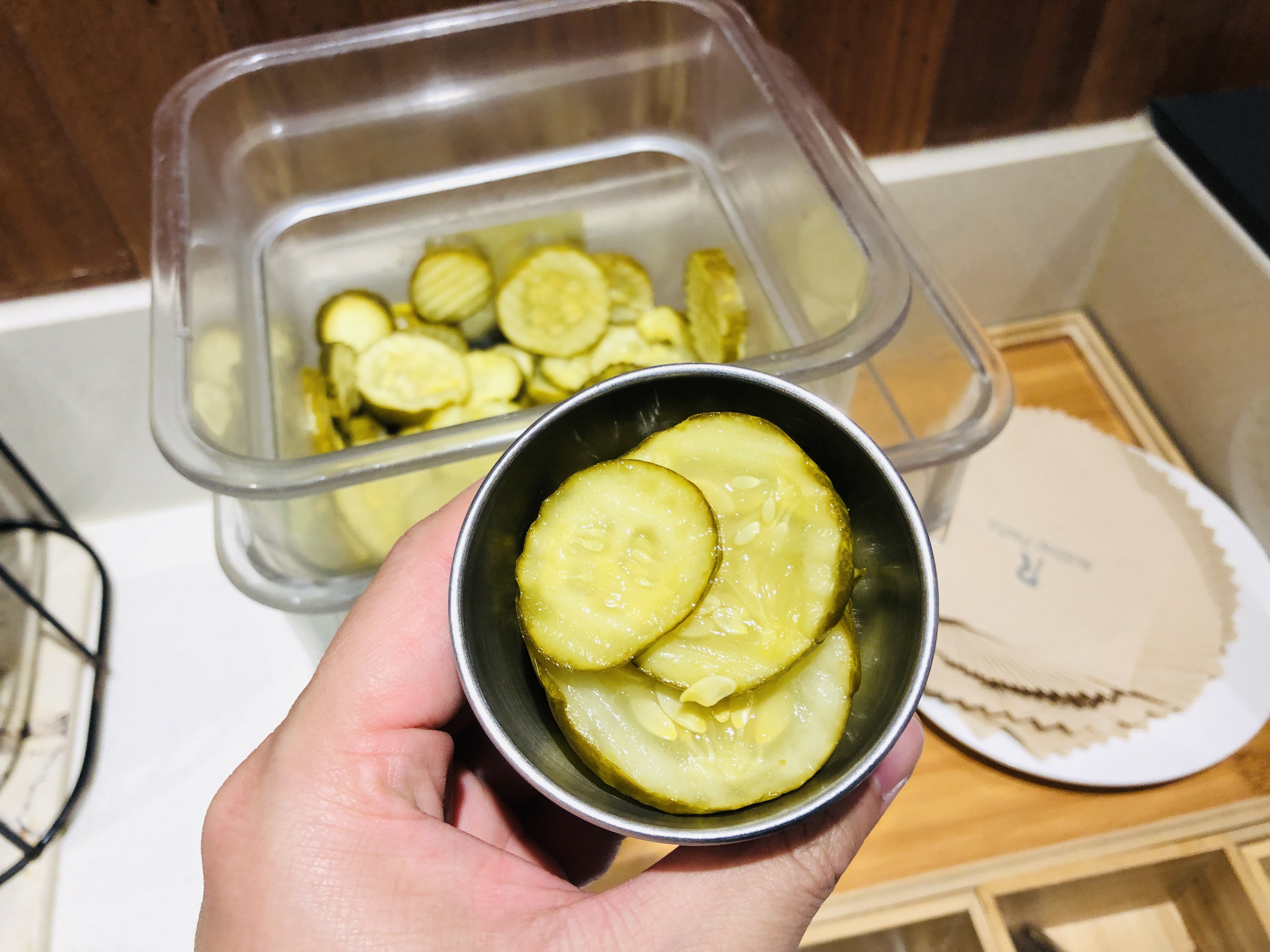 피클을 자유롭게 덜어 먹을 수 있어서 오히려 편했다. 맛도 좋았던 피클.