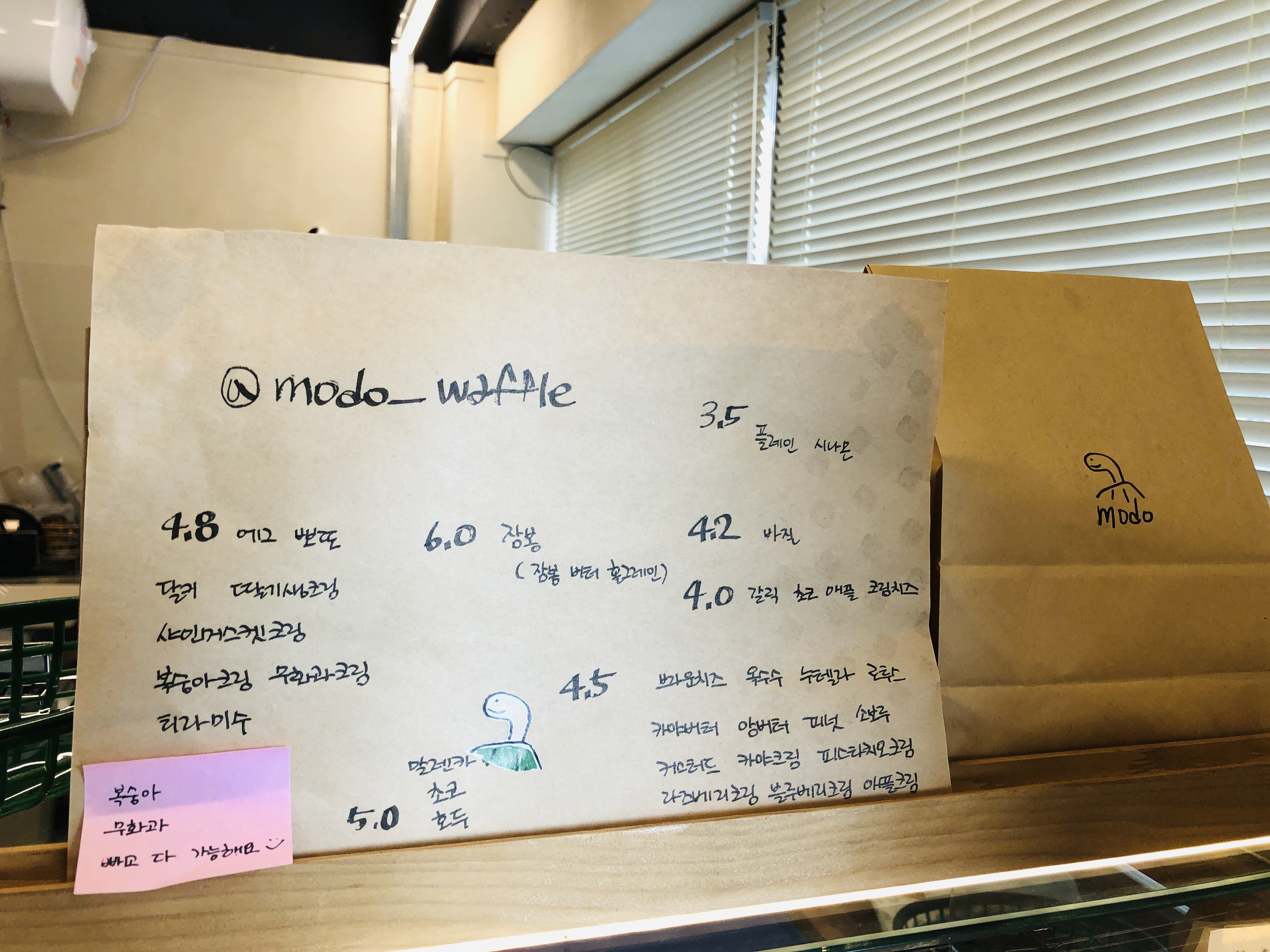 미리 예약주문한 생일용 크로플 케이크를 수령하고 잠시 모도를 살펴봤다.