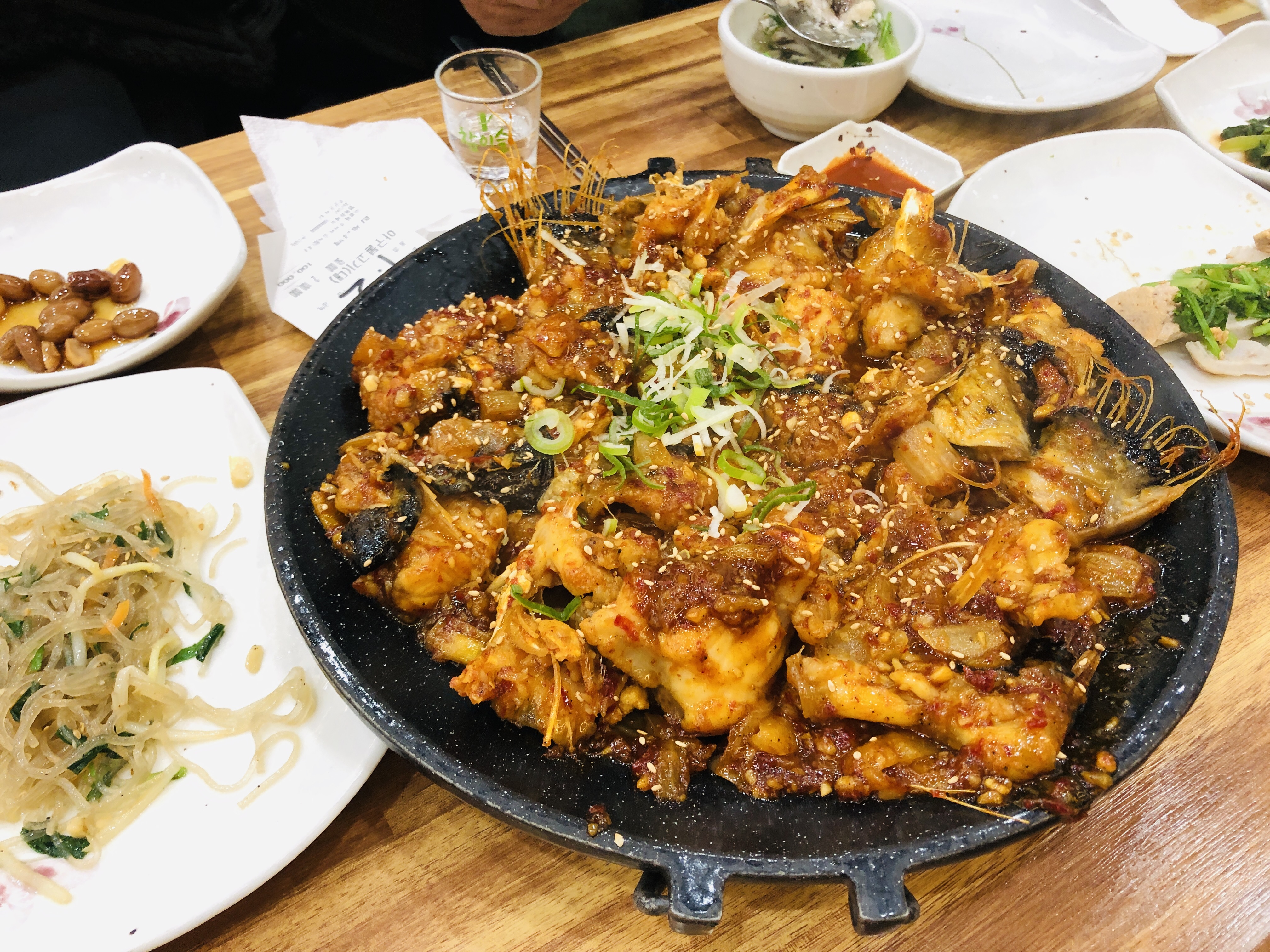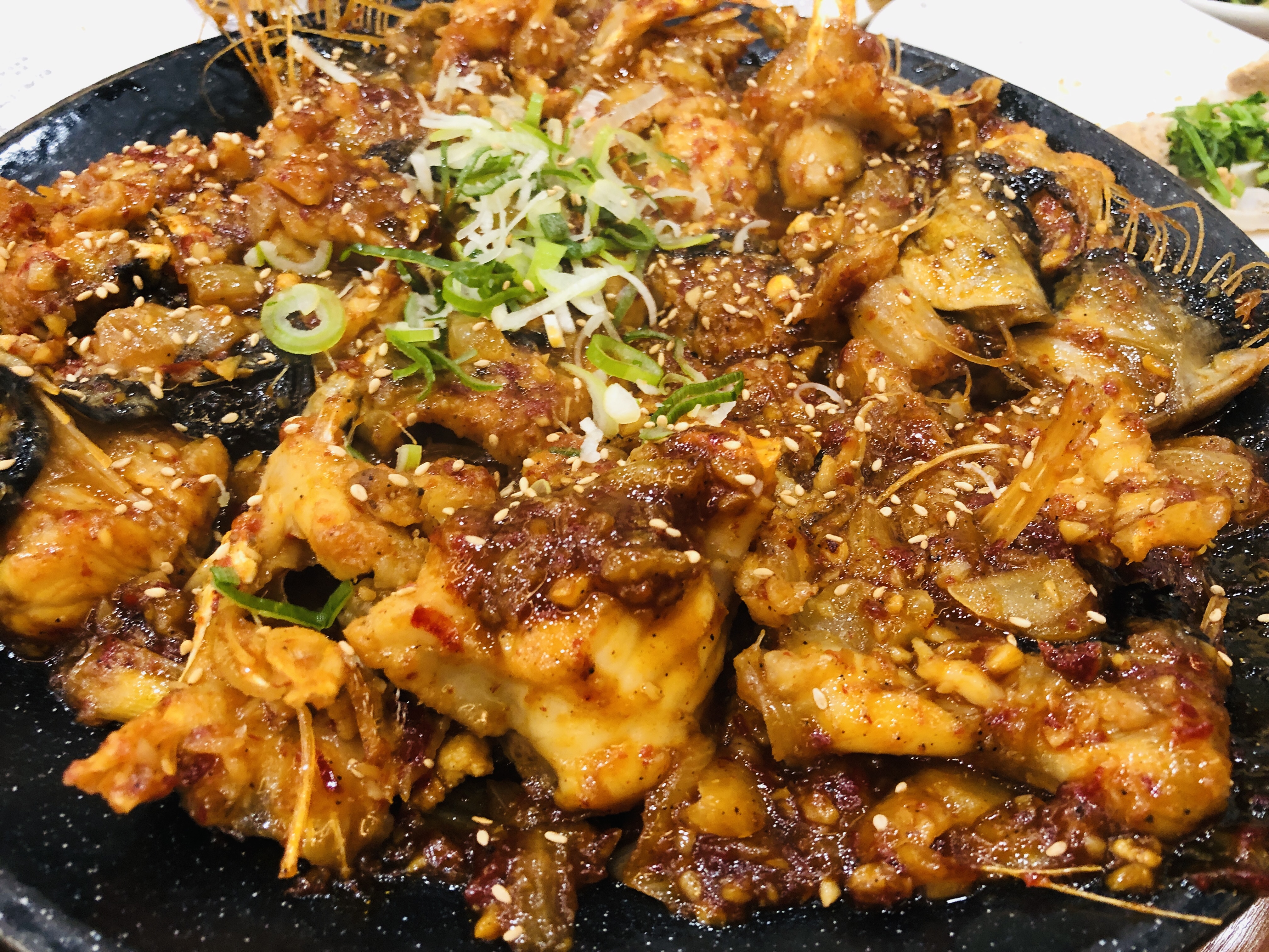 드디어 나온 아구불고기(대/3인). 성인 3명이 먹었는데 충분히 배부른 양이었다.