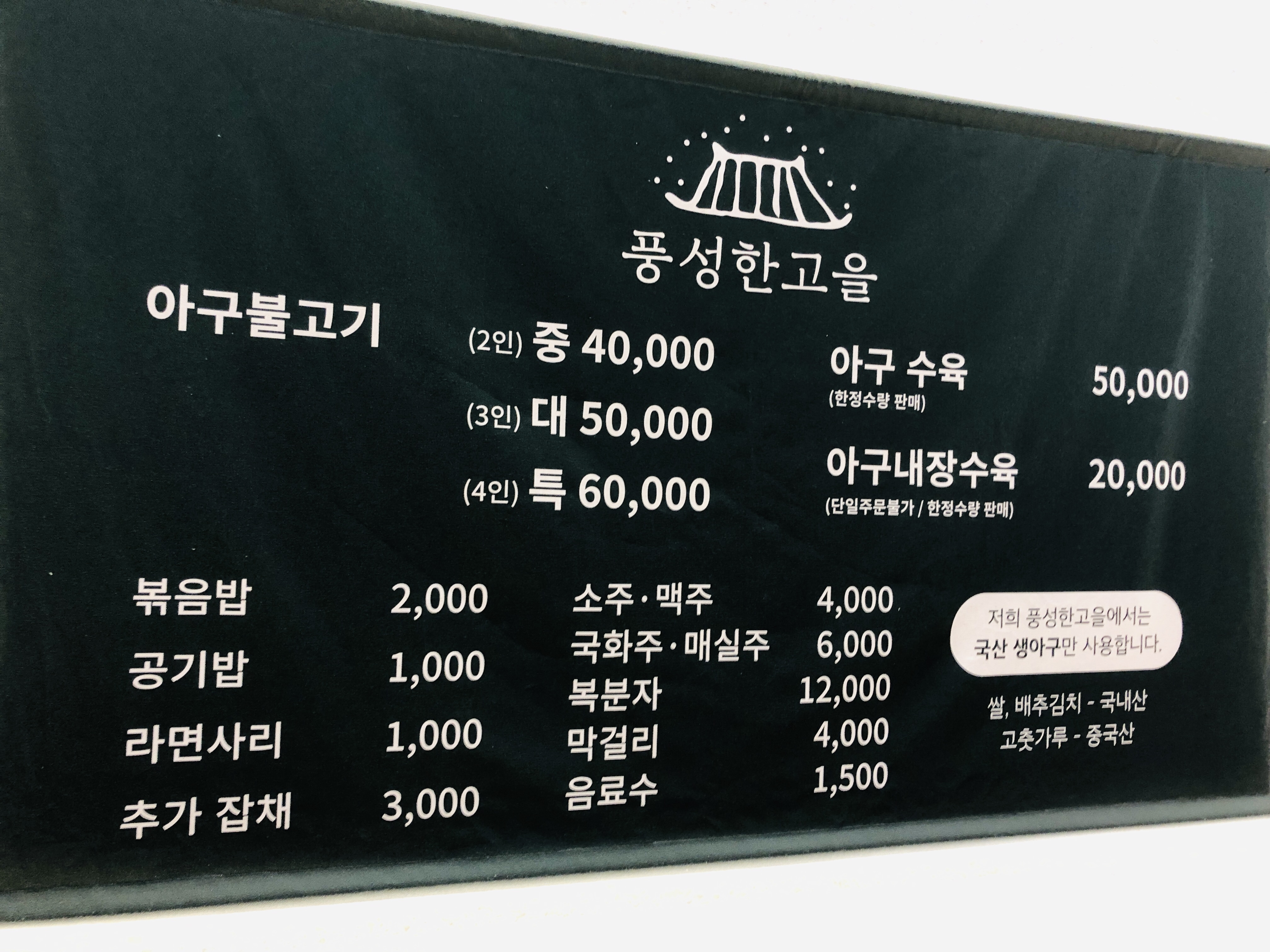 창원 소답동(정확히는 동정동) 아구불고기 맛집으로 명성이 자자한 '풍성한고을'.