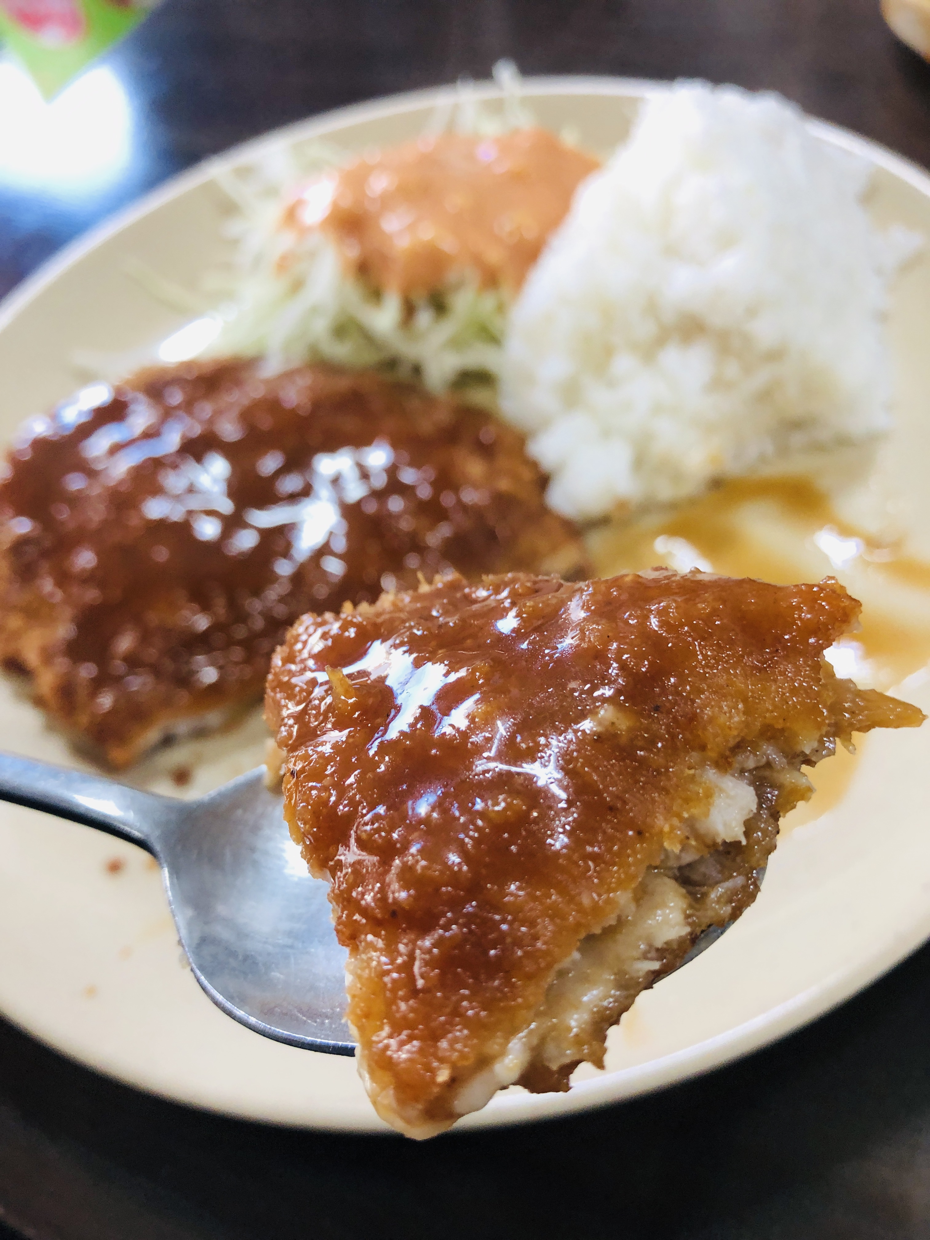 옛날 돈까스를 보니까 칼과 포크 말고 숟가락으로 먹고 싶어졌다. 학창시절에 빨리, 편하게 먹기 위해서 숟가락으로 먹곤 했다. 그래서 소스도 치즈돈까스에 부어버렸다.