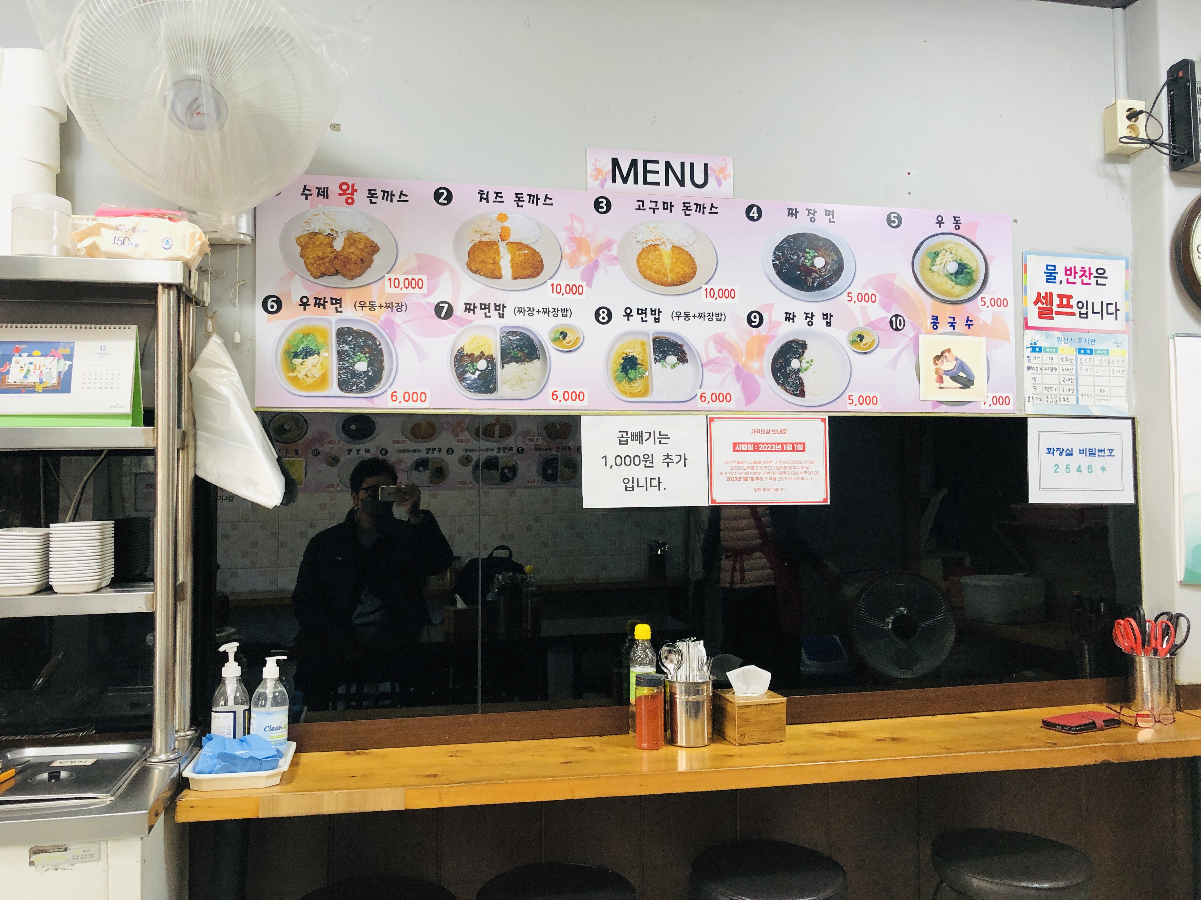 돈까스가 먹고 싶었다. 특이하게 우짜면, 짜면밥, 우면밥 등이 있었다. 평소 짜장면을 좋아해서 먹고 싶었지만 이날은 치즈돈까스로 갔다. 참고로 2023년부터 가격 인상. 내가 방문한 때는 2022년 12월말이었다.