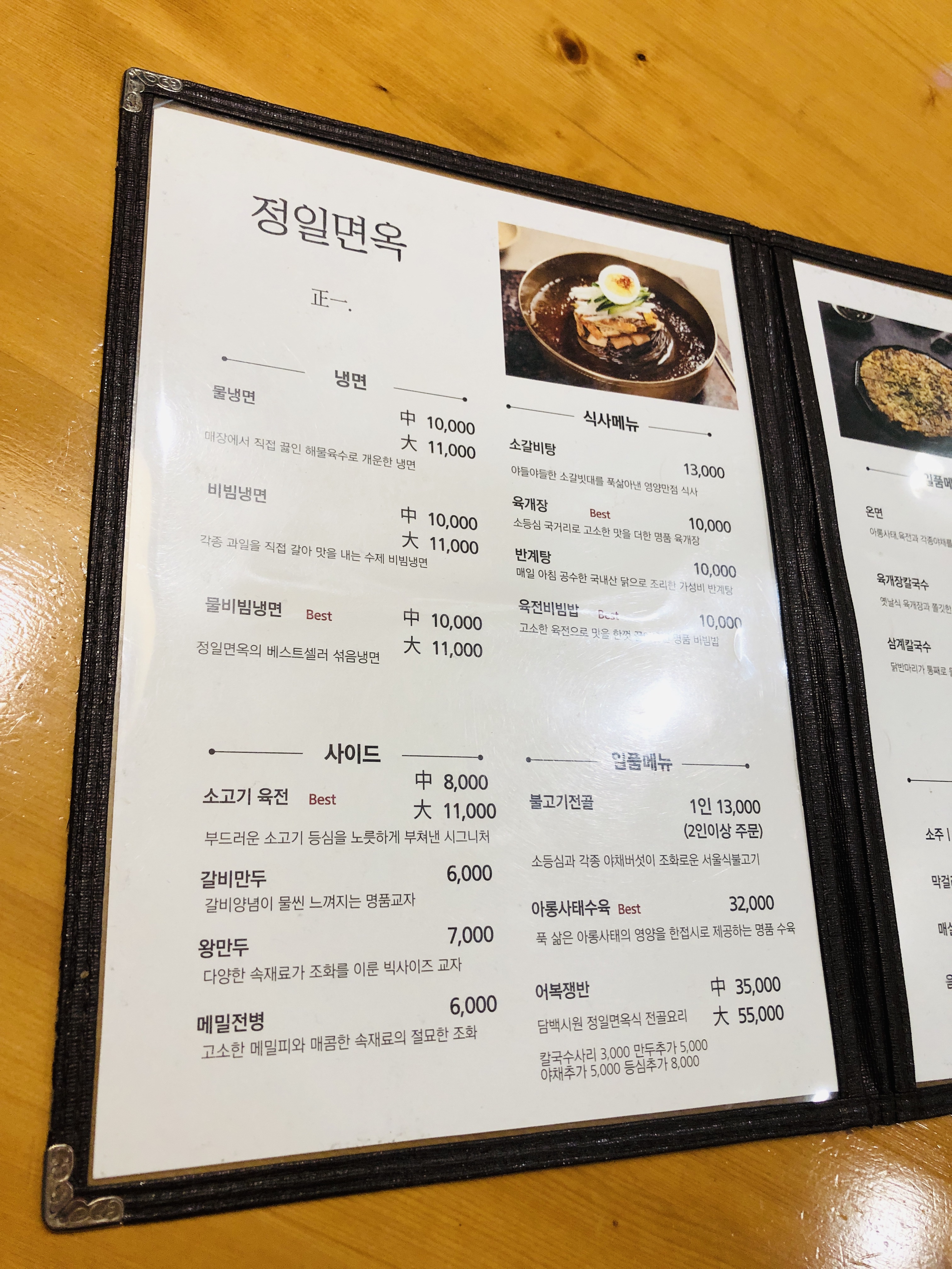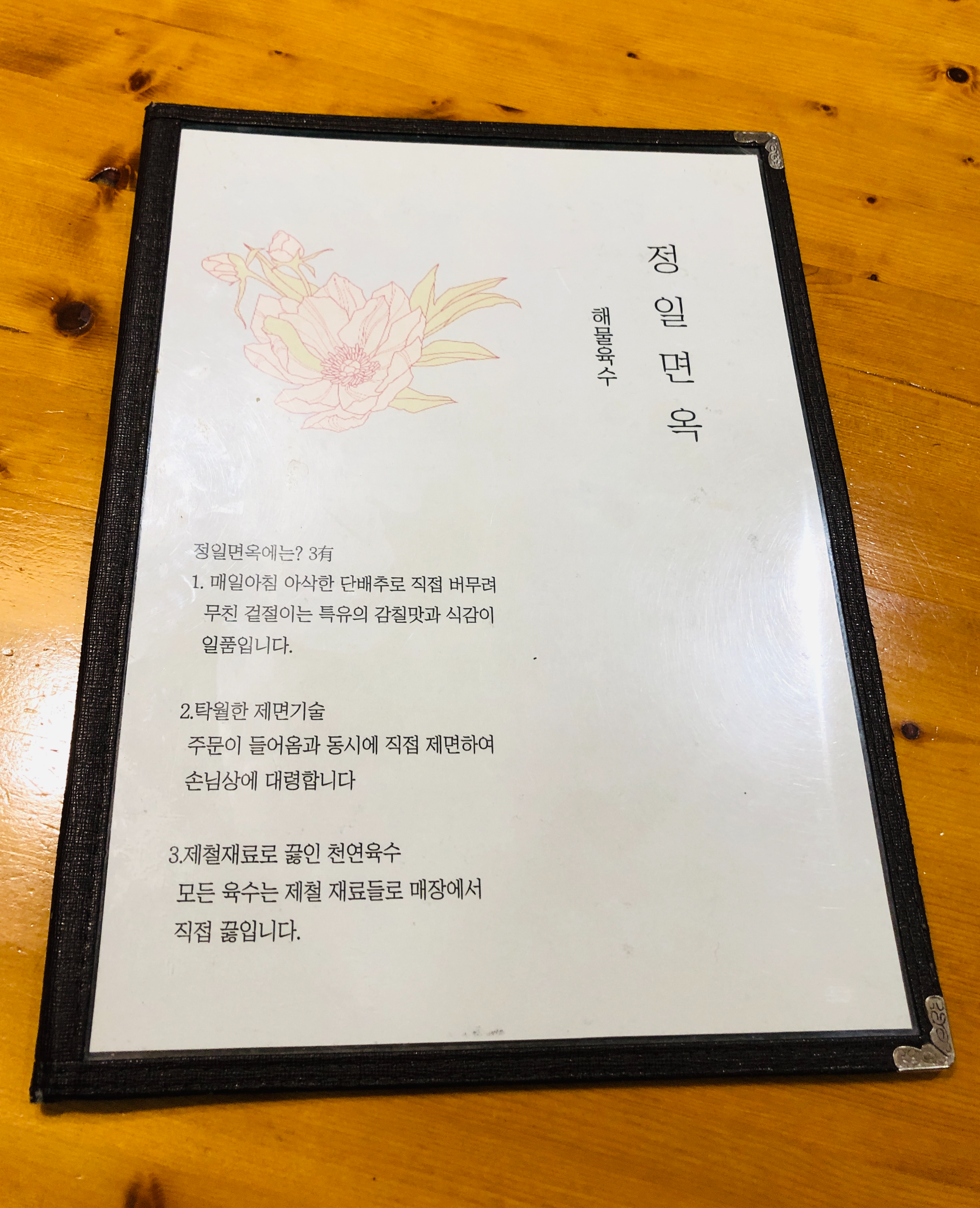 정일면옥의 3유. 뭔가 믿음직스러운 느낌.