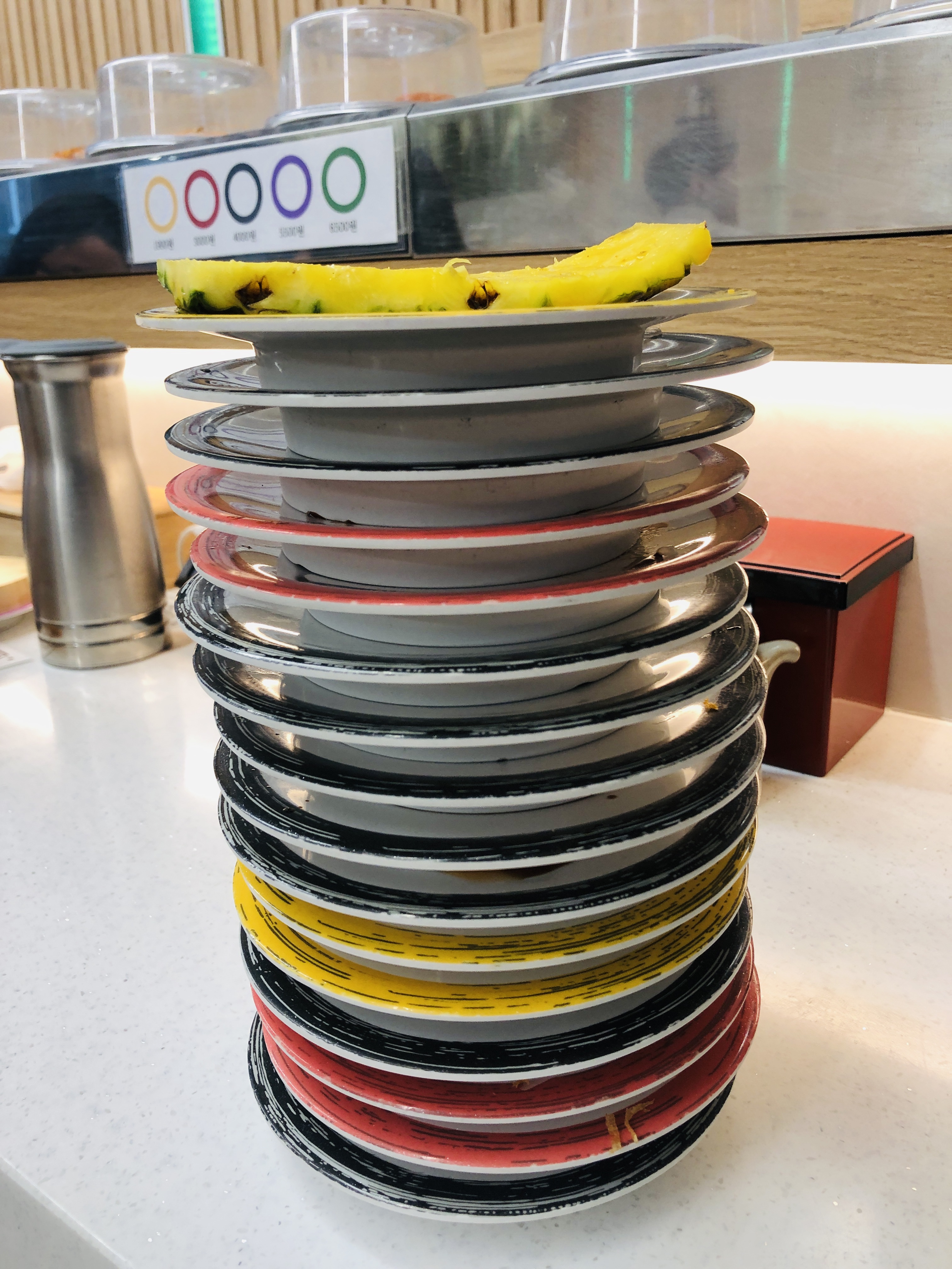 이날 가격 보지 말고 실컷 먹기로 했는데 얼마 못 먹었다. 요즘은 자꾸 과일이 먹고 싶어서 파인애플까지 챙겨 먹긴했다. 접시당 가격은 노랑 1,900원, 빨강 3,000원, 검정 4,000원. 나중에 영수증 보니까 검정접시를 제일 많이 먹었다. 다먹고 점심특선인 모듬초밥(15,000원) 포장까지 7만원 정도 나왔다. 그런데 스시문 우동이 맛있다던데 마지막에 생략해서 아쉽다. 다음 기회가 있겠지? 기본적으로 썰어놓은 생선회를 좋아하지만 회초밥은 또 다른 매력이 있다. 다른 음식으로 볼 수 있다. 한번씩 생각나는 맛. 가깝고 가성비 좋은 스시문 재방문 예정.