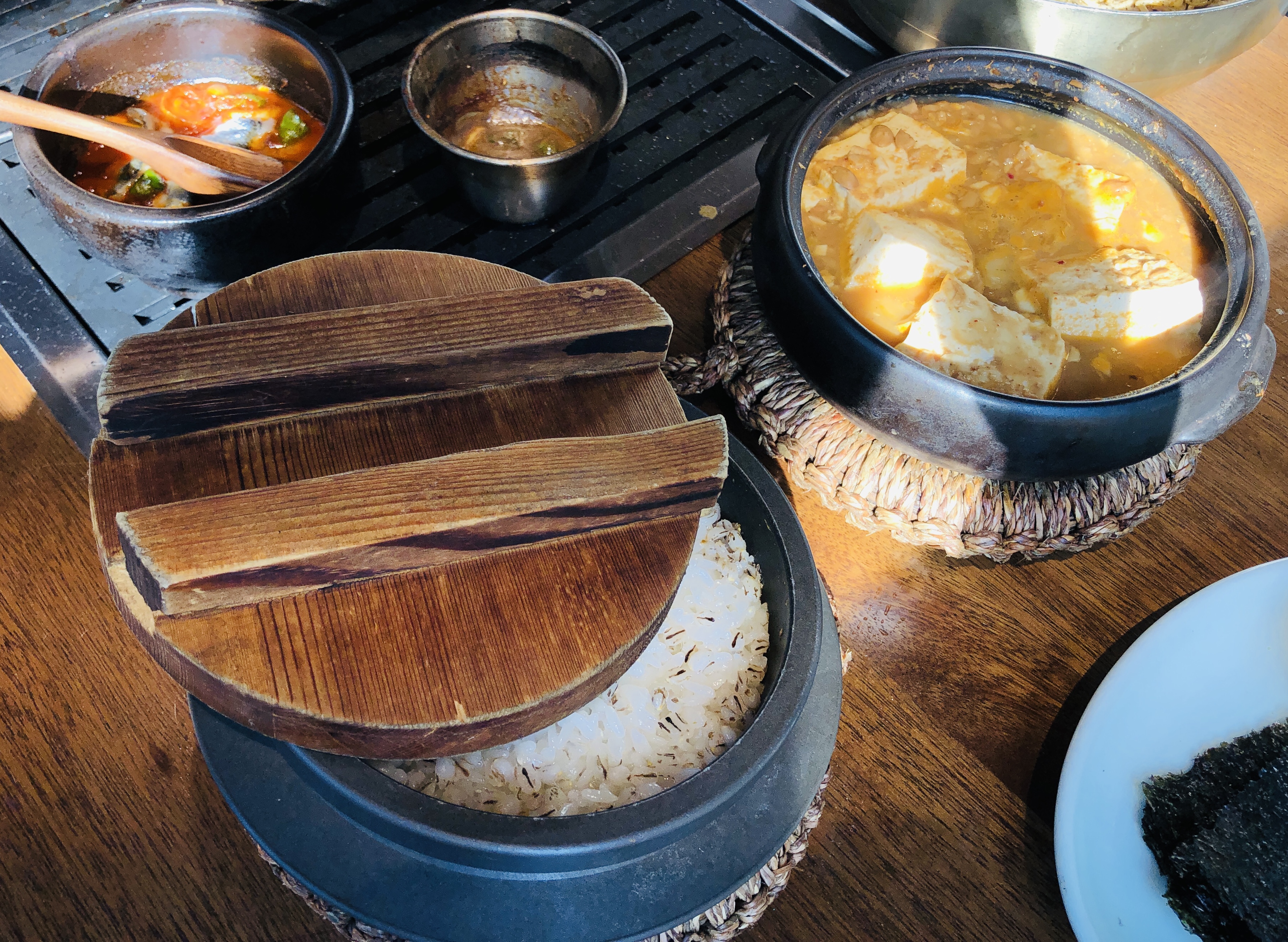 마무리는 따끈한 돌솥밥과 구수한 청국장. 구운 김이랑 같이 먹으니까 너무 맛있었다. 기름진 속을 정리해주는 건강한 밥상 느낌. 고기도 좋지만 돌솥밥과 청국장 먹을 여유는 꼭 남겨두자. 항상 마무리가 중요하다. 엄용백낙돈 동래점이 좋았던 또 한가지는 제주풍으로 내외부를 꾸며서 잠시나마 일상여행의 느낌을 누릴 수 있었던 부분이다. 돌담과 자갈길, 특히 음식도 그렇고 편하게 부산 속 제주 감성을 맛보길.