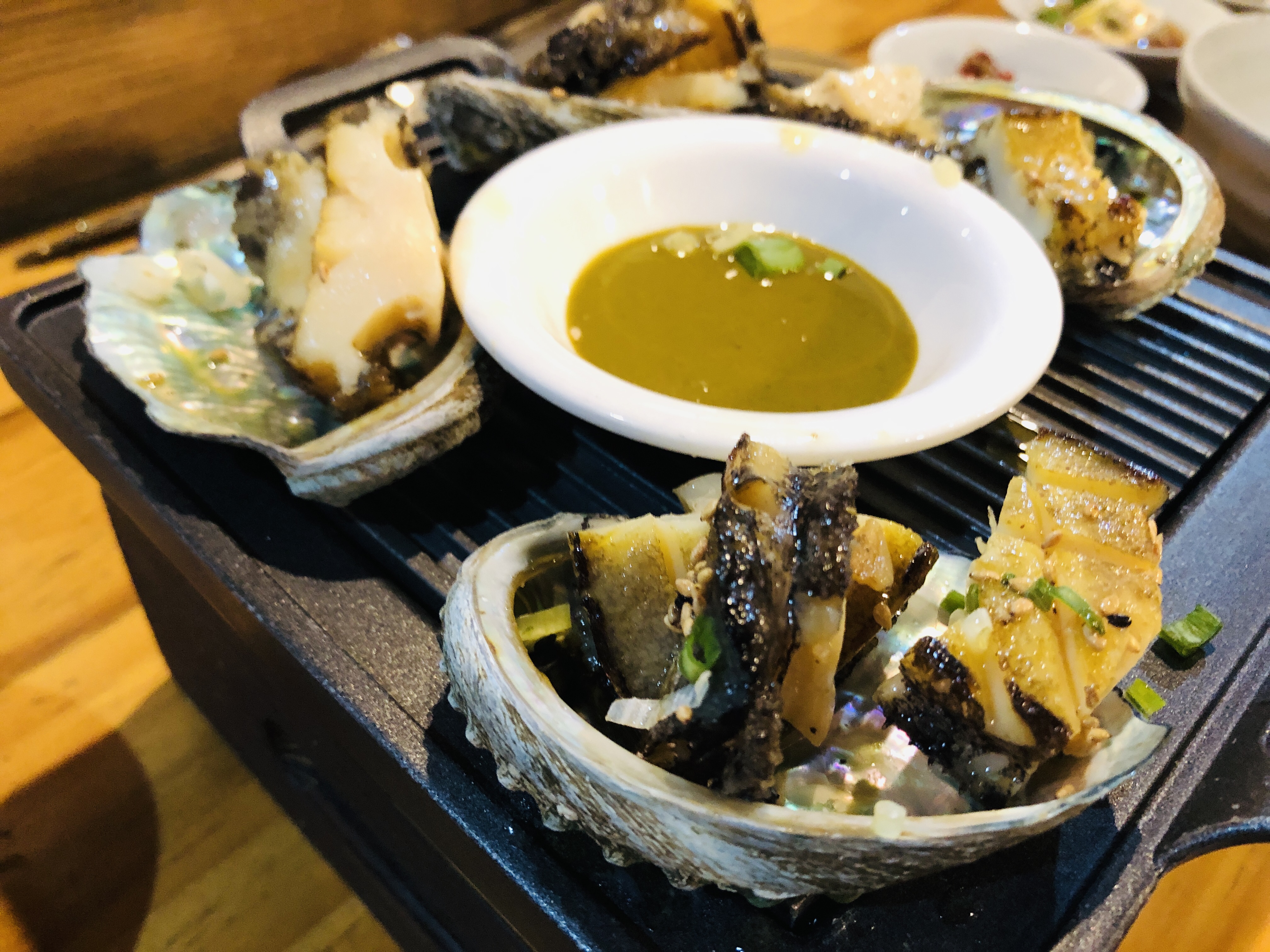 전복버터구이는 조금 시간이 걸렸다. 그래도 육회물회를 다 먹기 전에 나와서 다행. 전복과 버터의 조합은 맛도 있고 영양도 듬뿍. 가격(2만원)은 좀 나가지만 분명 제 값을 한다. 이날도 몸보신한 느낌으로 식사를 마쳤다. (참고로 전복버터구이는 완도산 활전복 5마리가 나온다. 위 사진은 직접 가위질하고 한마리 먹은 뒤 찍은 것)
