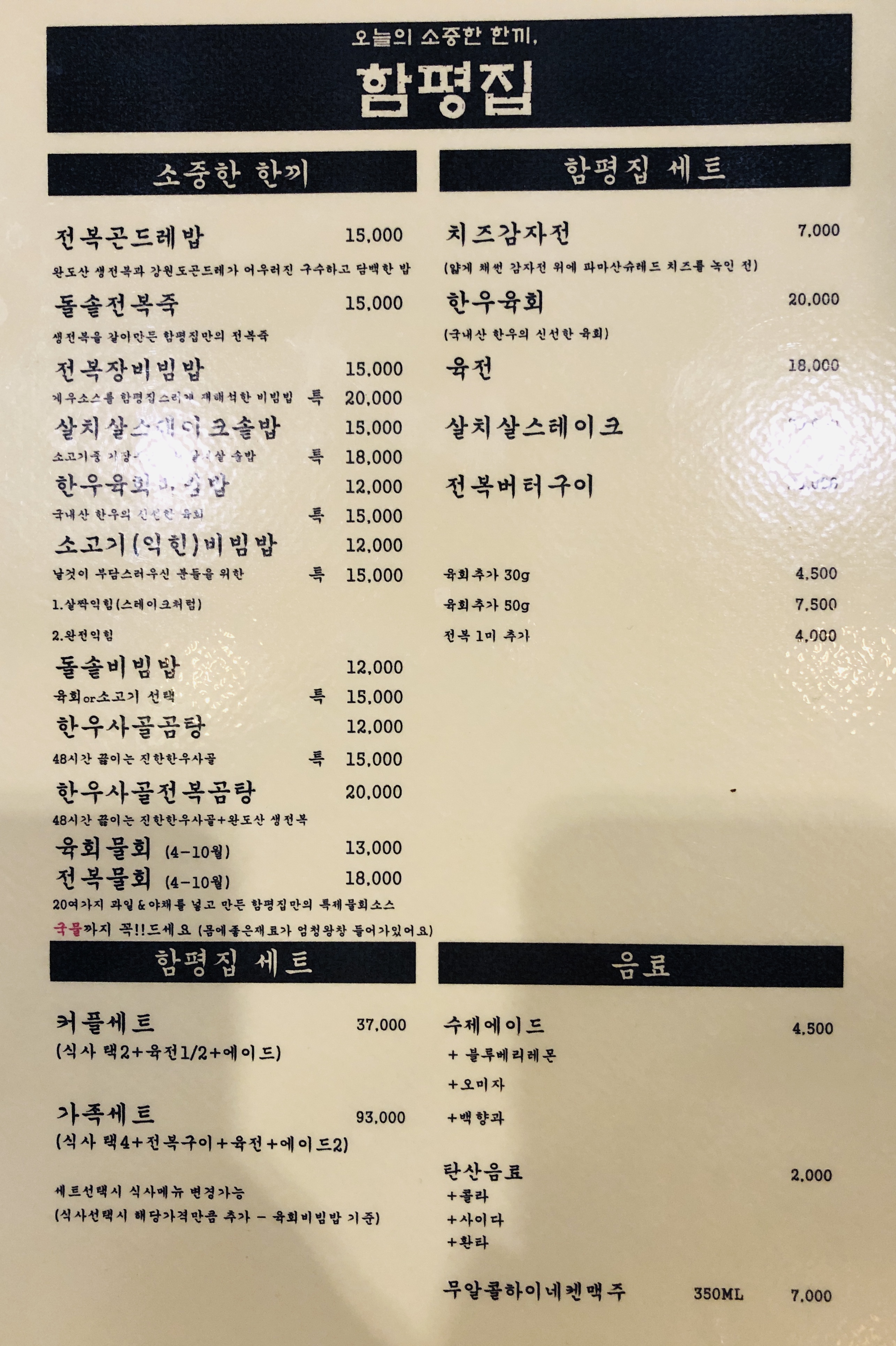 함평집(ㅎㅍㅈ)의 육회비빔밥, 전복비빔밥 등 레토르트 형태로 제품 판매도 하는 듯했다. 맛있을 것 같은데 역시 함평집에 가서 먹는 게 최고.