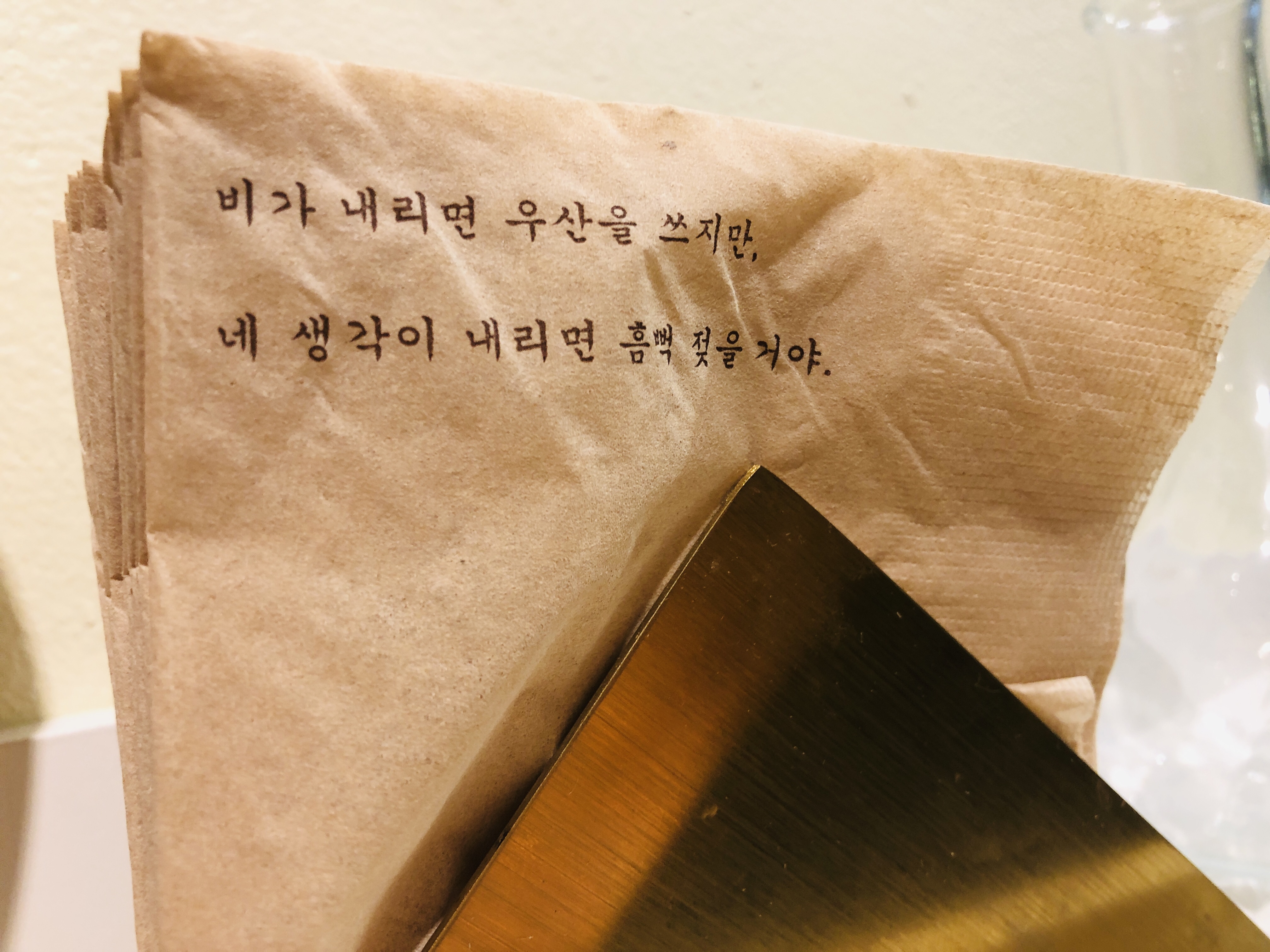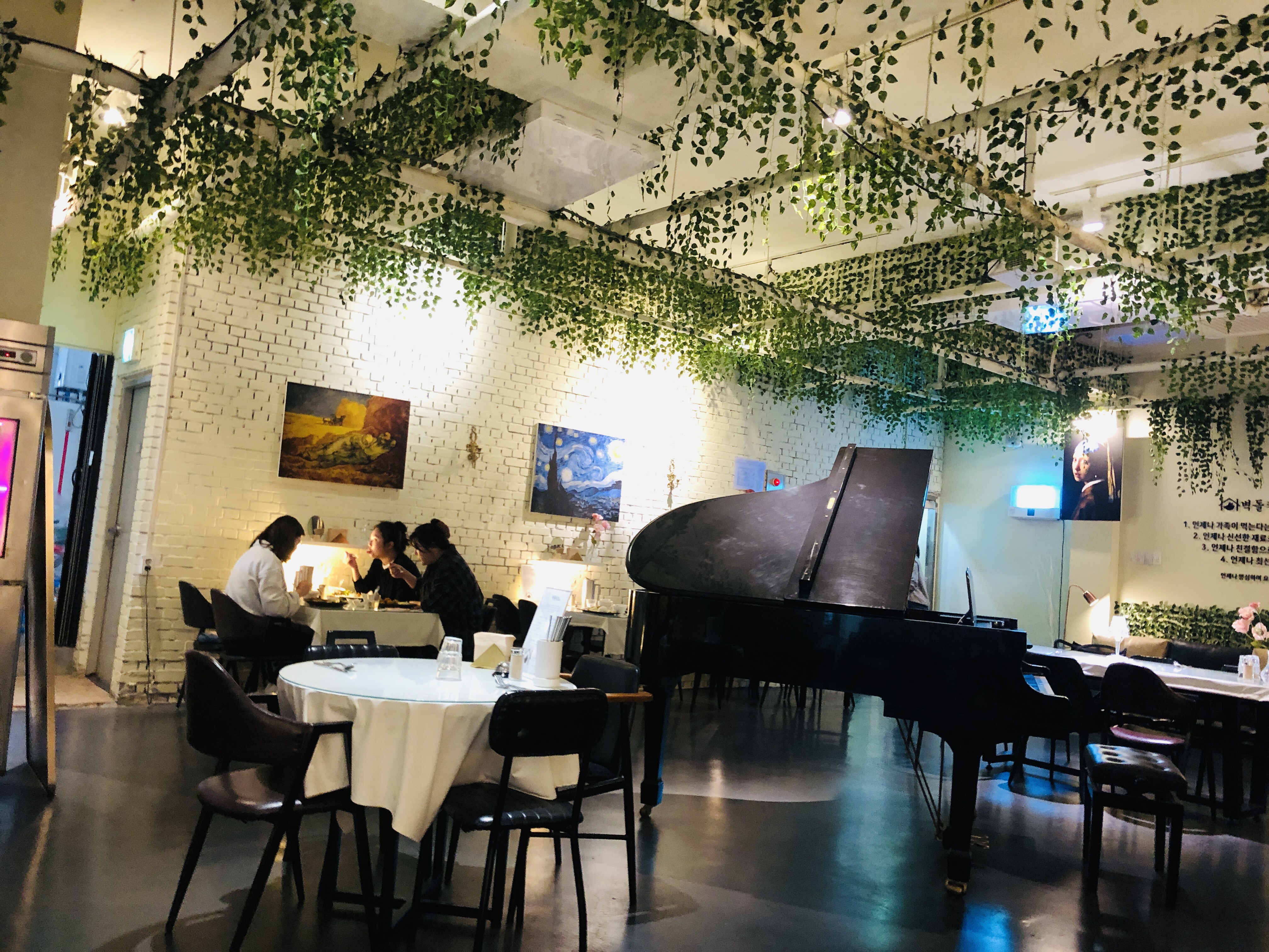 외부의 느낌과 달리 내부로 들어가면 넓고 감성적인 공간이 매력적이다. 살짝 어두운 감이 있지만 식사를 방해하지 않는다. 오히려 상대방 얼굴 보면서 식사하기 부담 없는 밝기인 듯하다.