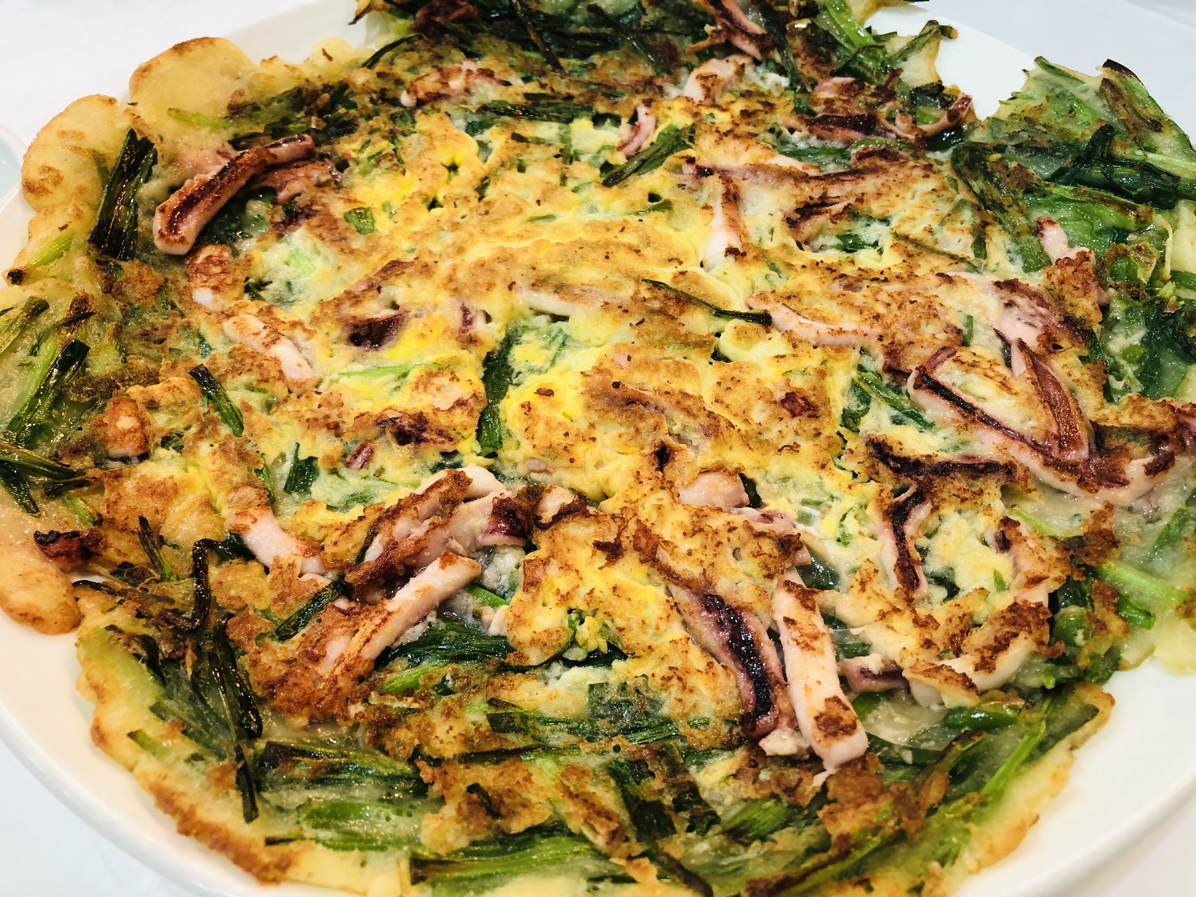 해물파전. 사실상 해물이라고는 오징어가 전부였지만 맛은 있었다. 왜 비오는 날의 파전은 더 맛있을까?