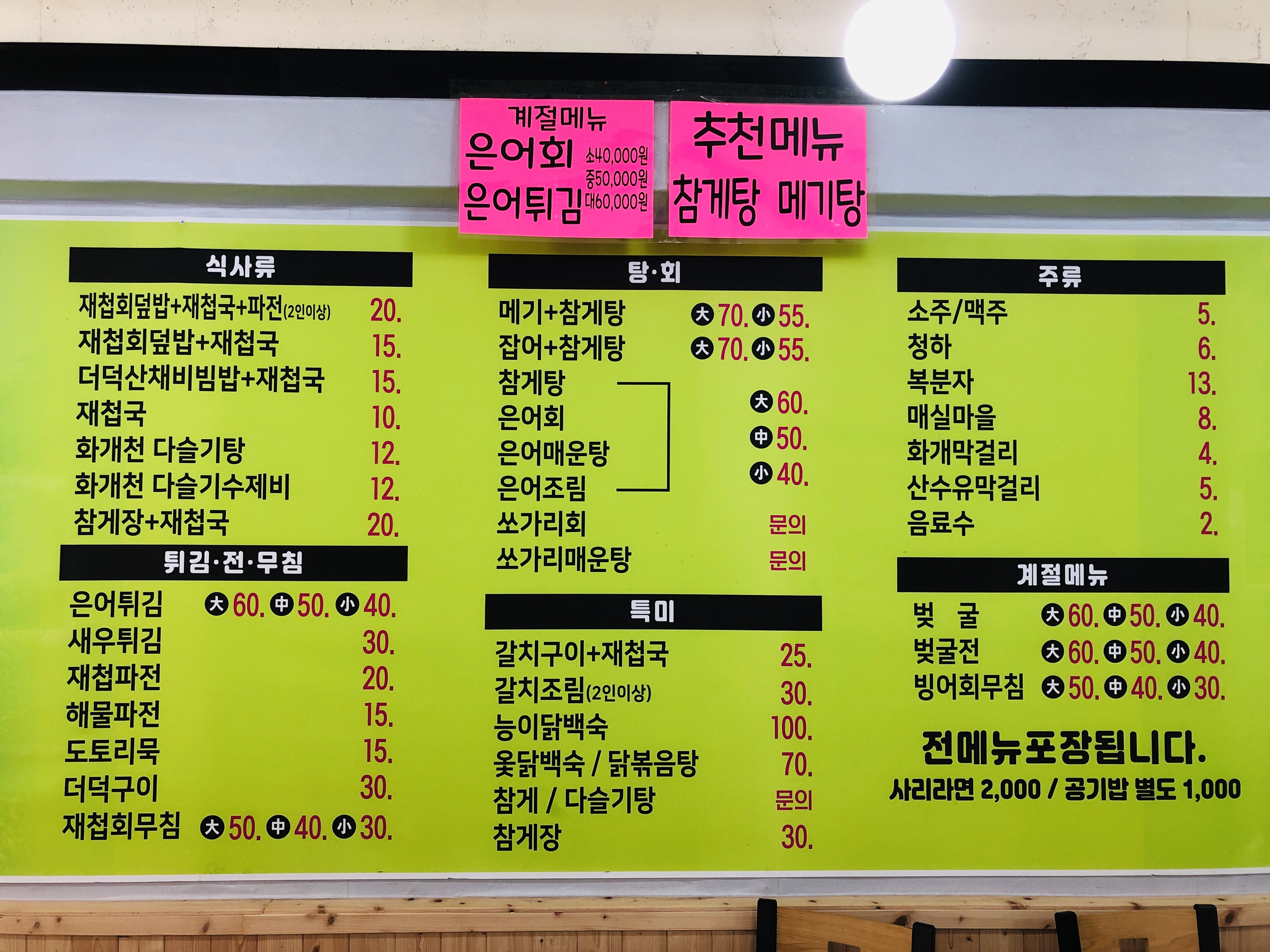 참게탕까지 나오고.