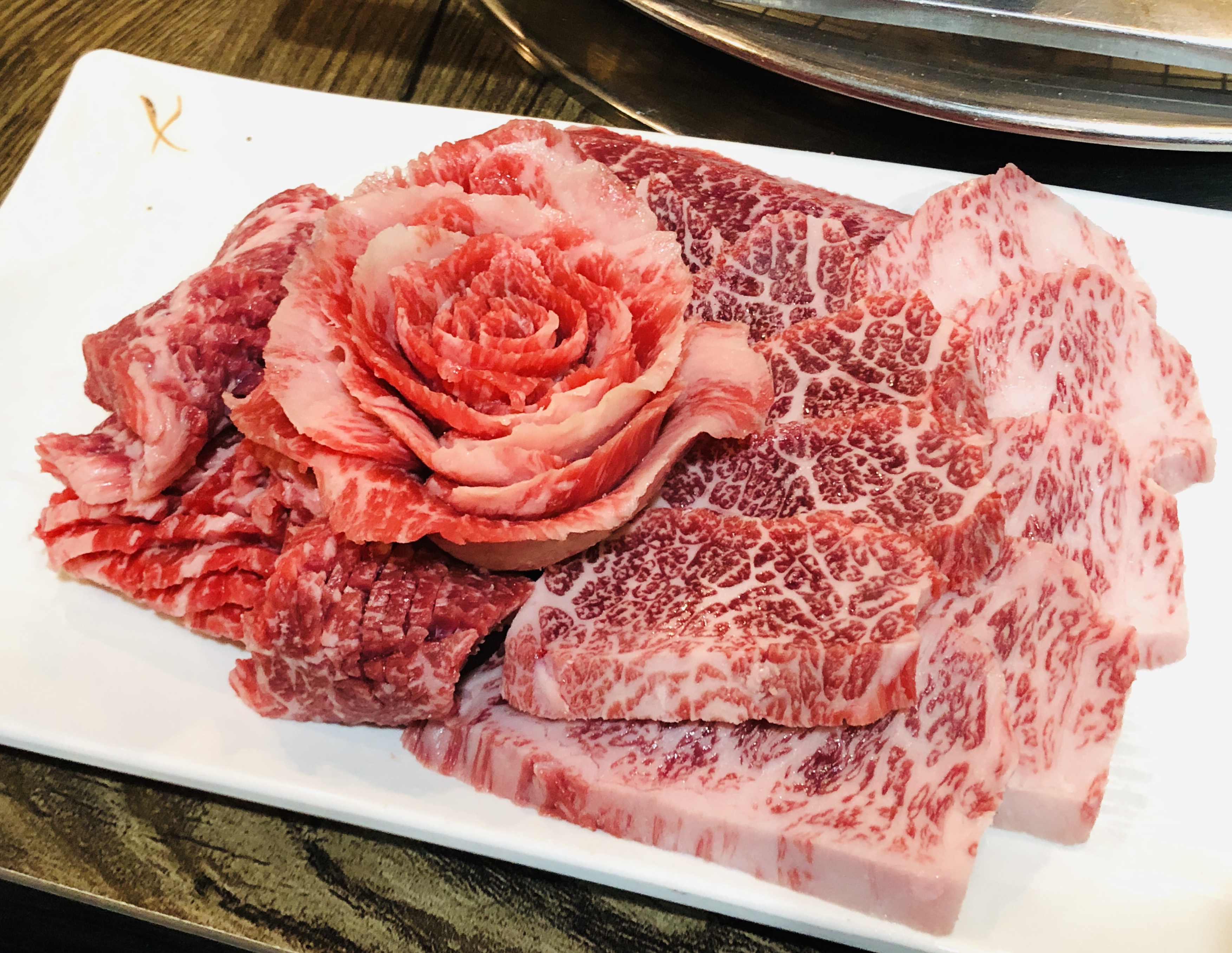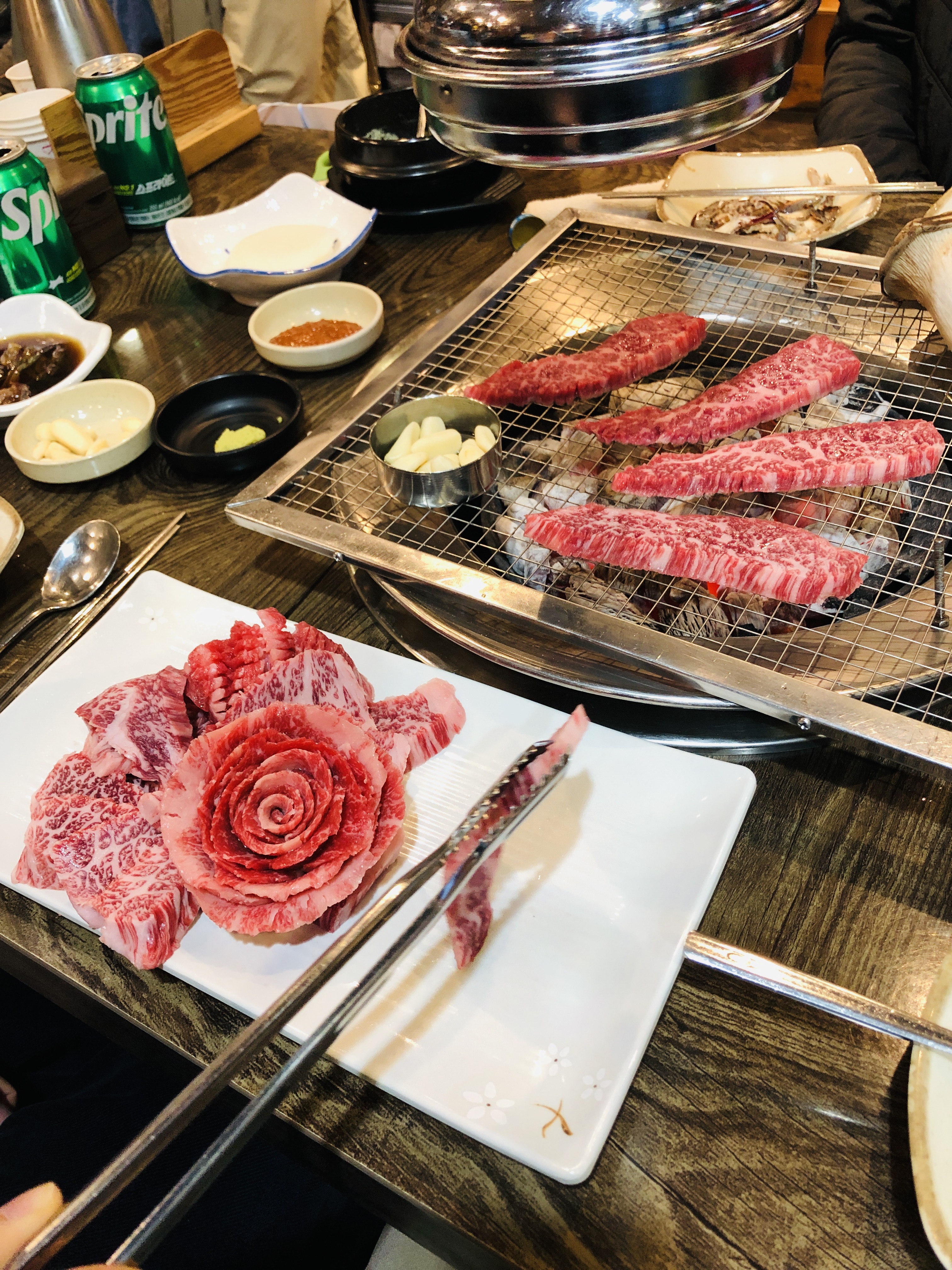 이날의 본론인 한우모듬. 육갑의 한우꽃은 매번 감탄하면서 먹는다. 다들 처음에는 먹기 아깝다고 하지만 결국 맛있게 다 먹음.