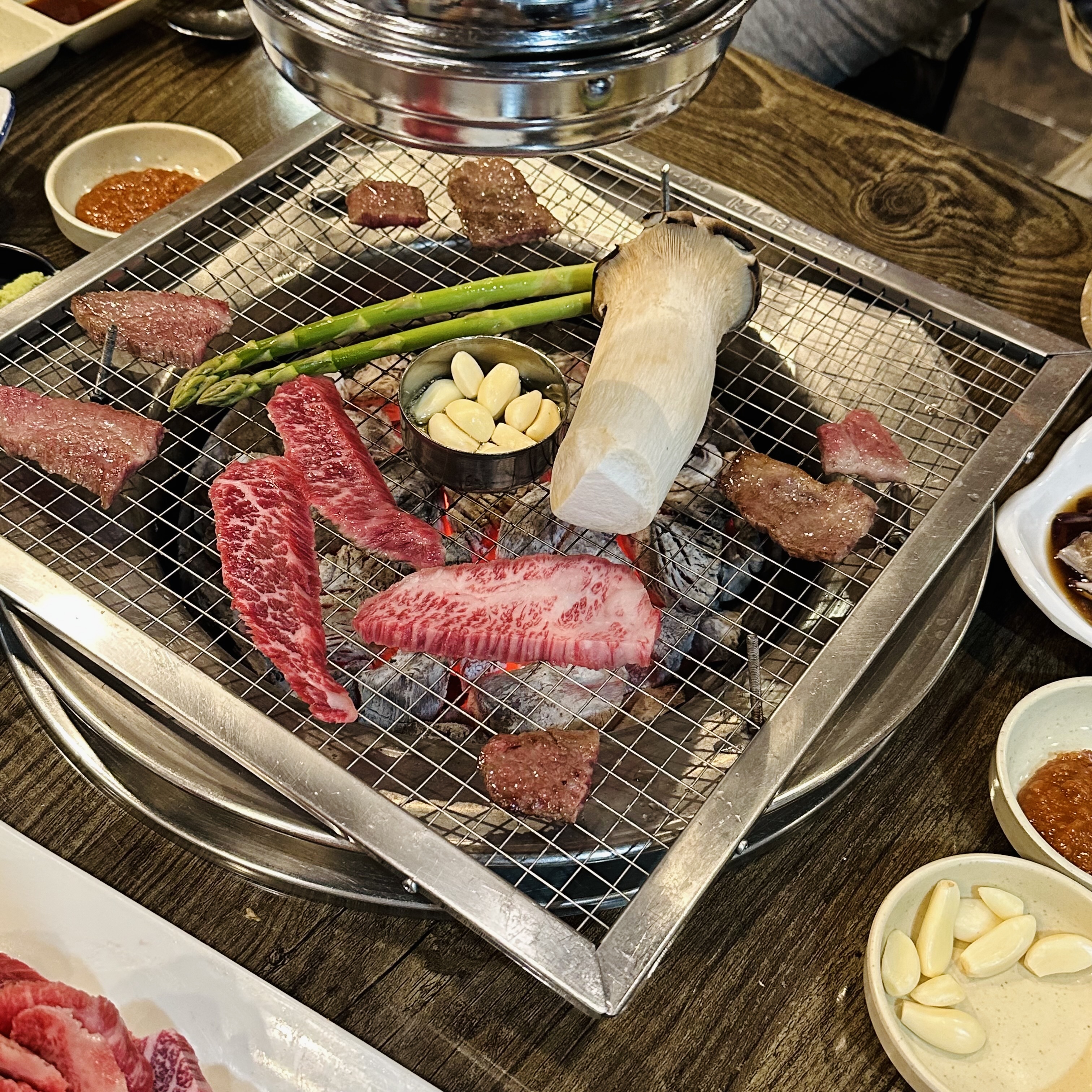 숯불에 구워먹는 한우의 맛. 그리고 한우도 다 같지 않은데 육갑 고기 맛은 유난히 더 맛있다.