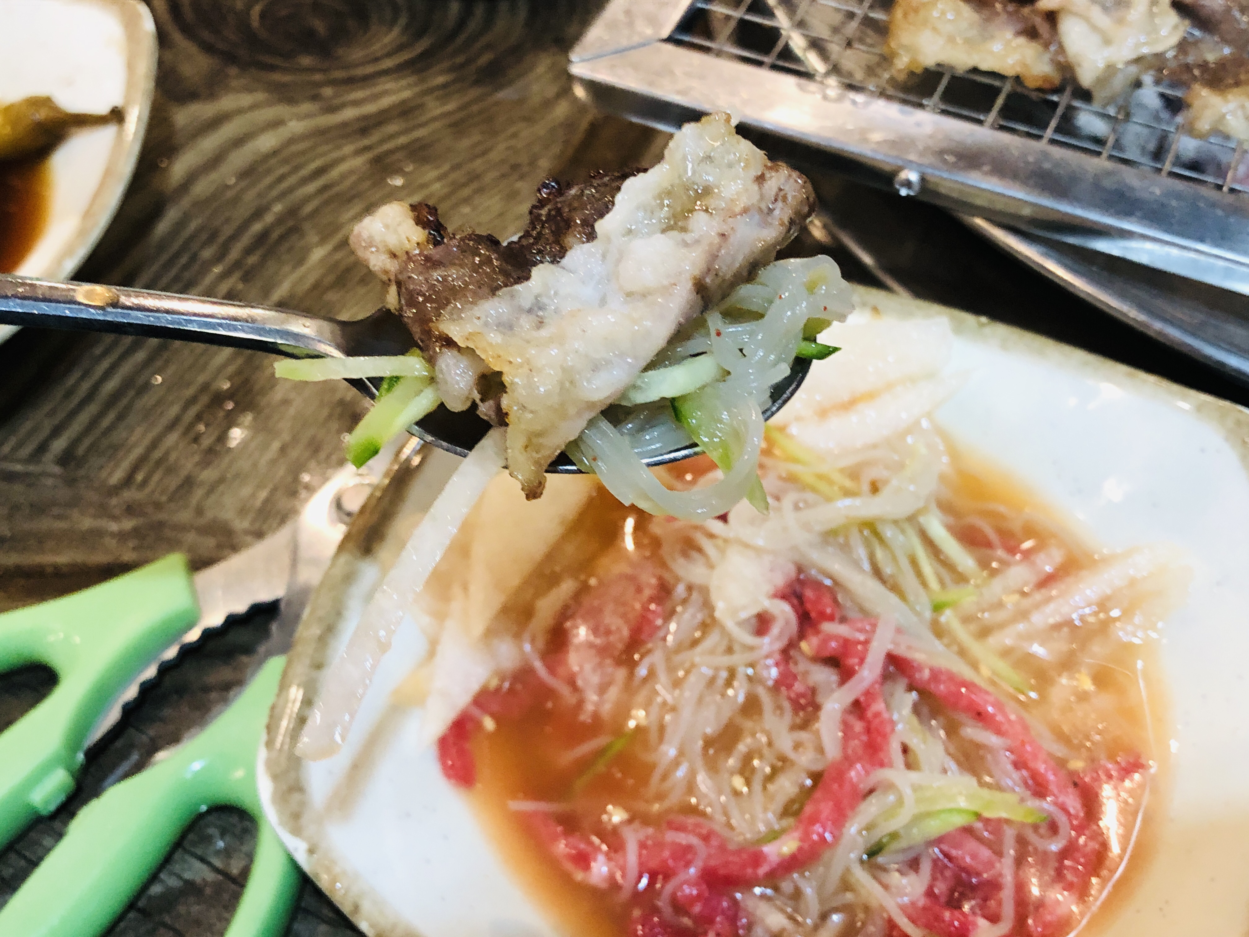 맛있는 것 더하기 맛있는 것, 육회냉면 그리고 차돌박이의 환상 조합. 모처럼 입이 행복한 시간이었다. 그 여운을 어떻게 표현해야 할지 모르겠는데 집에 와서도 한동안 입이 향긋했다(?). 다른 고깃집과 다른 뒷맛, 역시 육고기일등갑이다. 가족 모두 대만족!