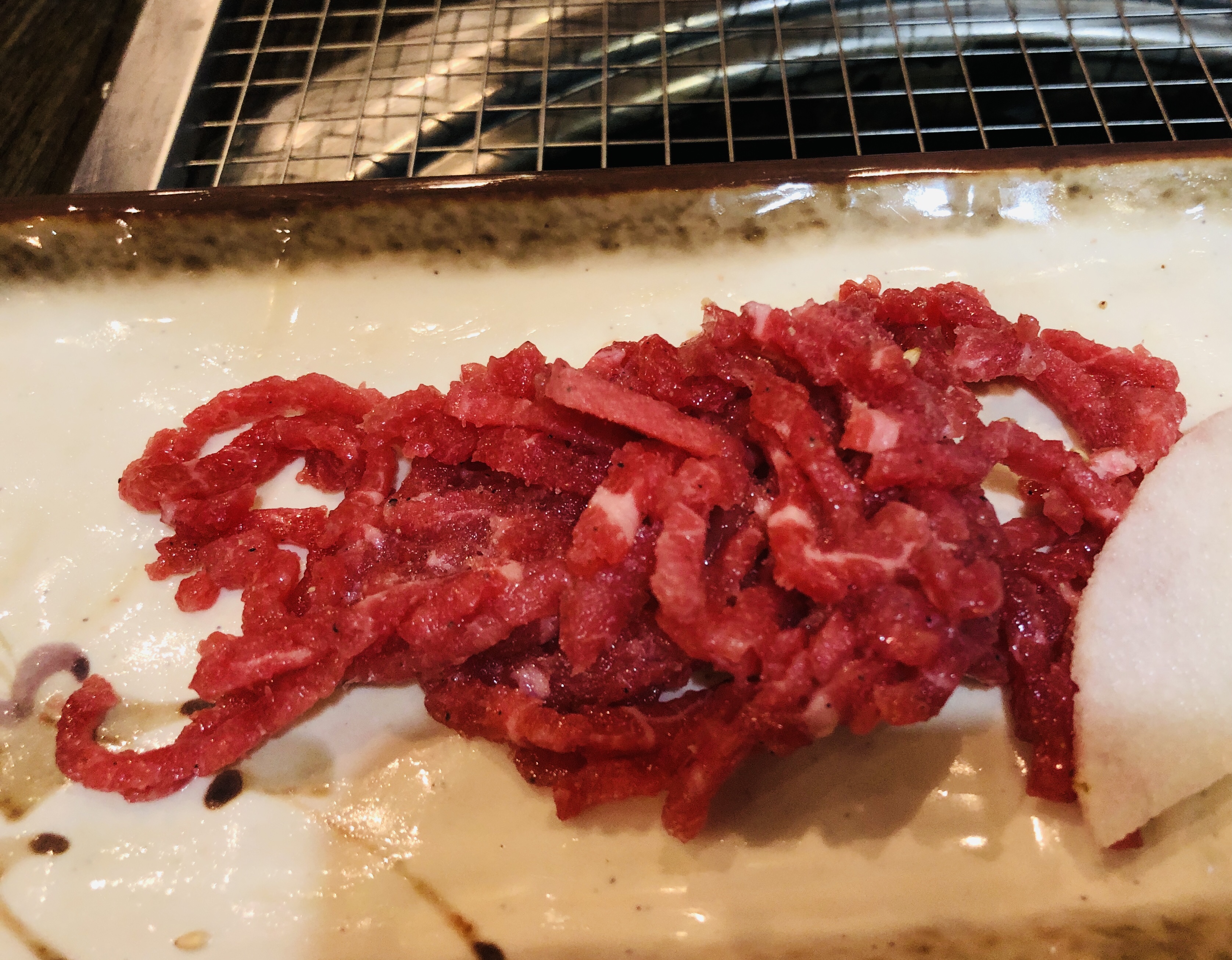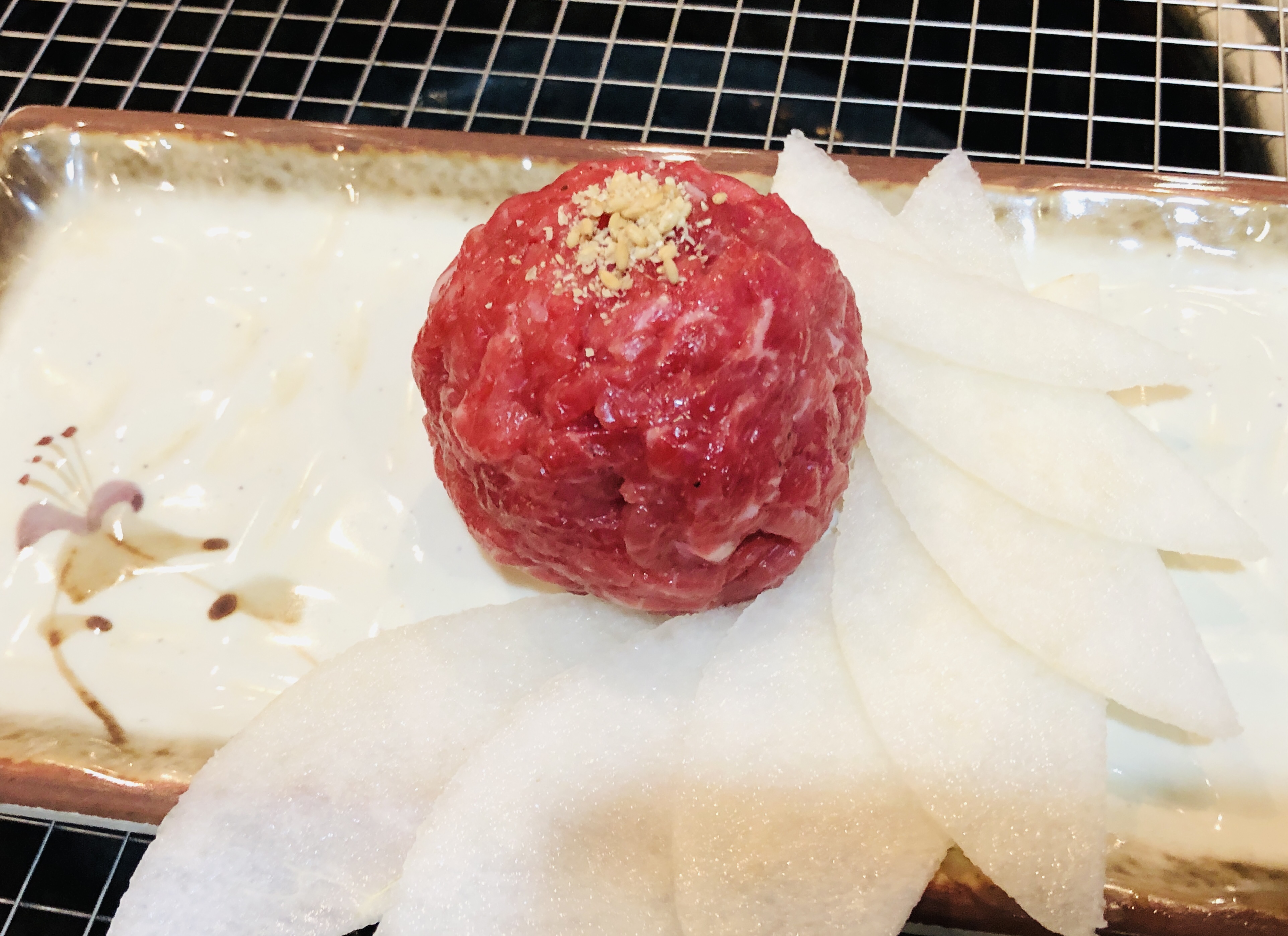 한우모듬 주문. 제일 먼저 육회 서비스가 나왔다.