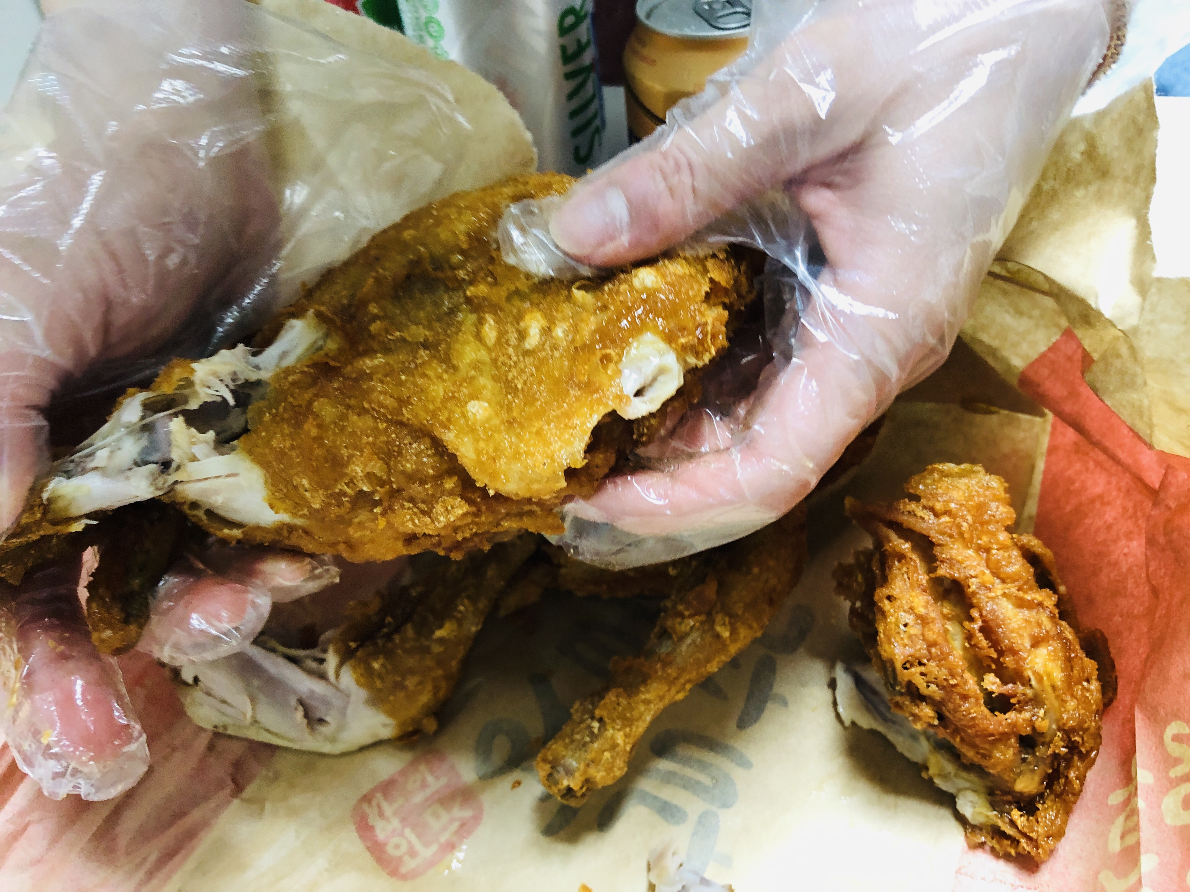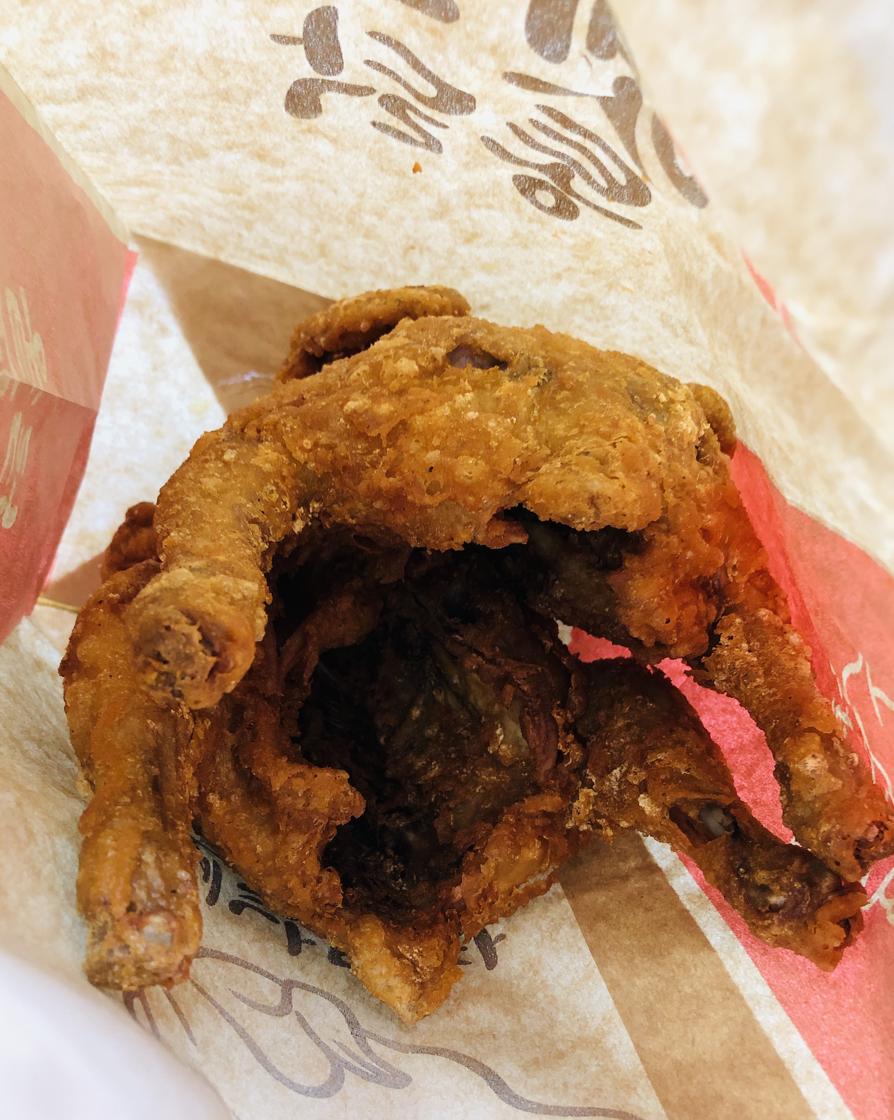 영계를 통으로 튀겨서 뜯어 먹어야 한다.