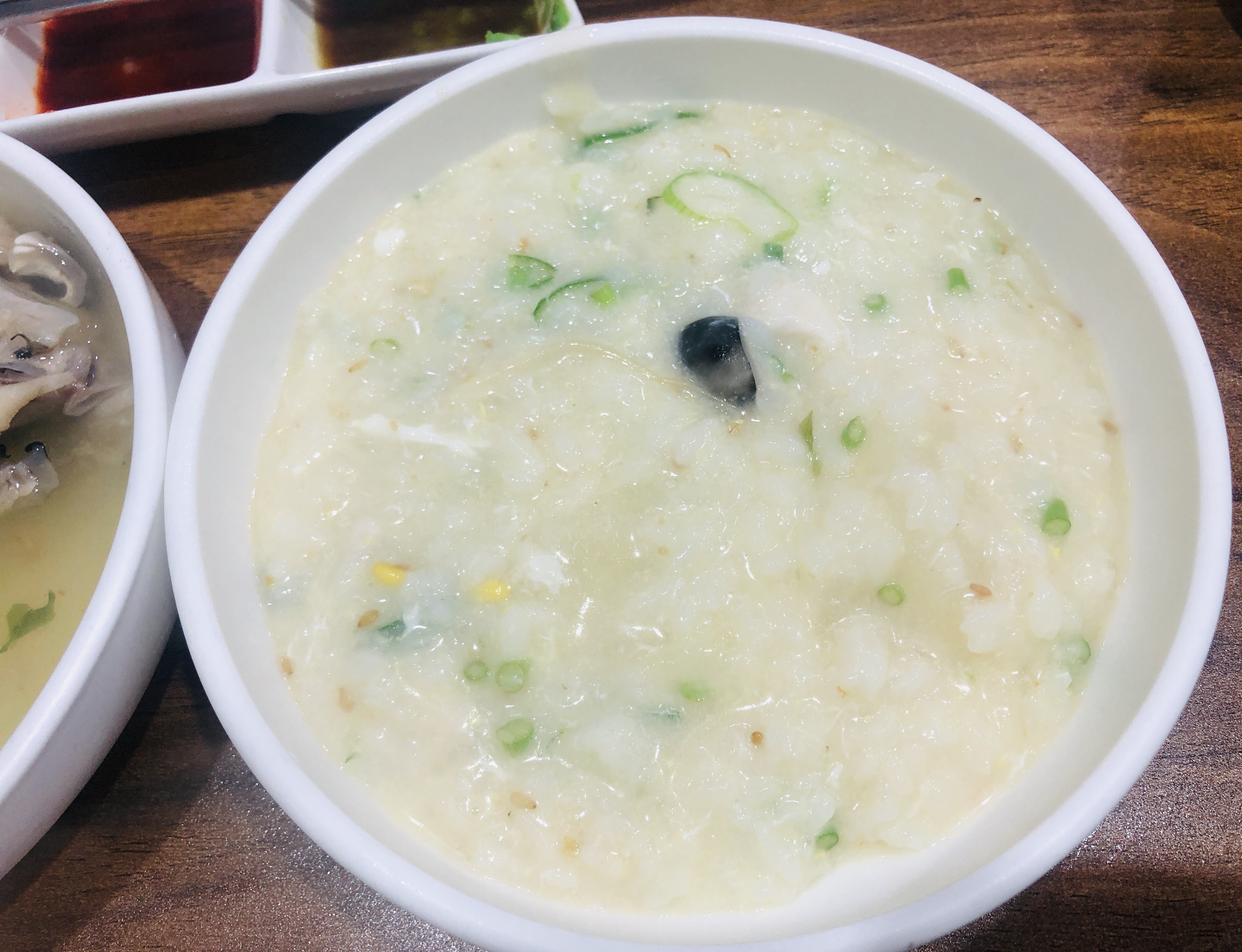 어느 정도 참복과 건더기를 건져 먹고 마무리로 죽 주문. 이 죽이 특별한 이유는 복어 정소를 더해서 끓였기 때문. 복어가 낯선 입장에서 아무리 귀한 식재료라도 복어 정소만 먹기는 꺼렸을 것이다. 그런데 죽에 섞어서 같이 먹으니까 맛있었다.