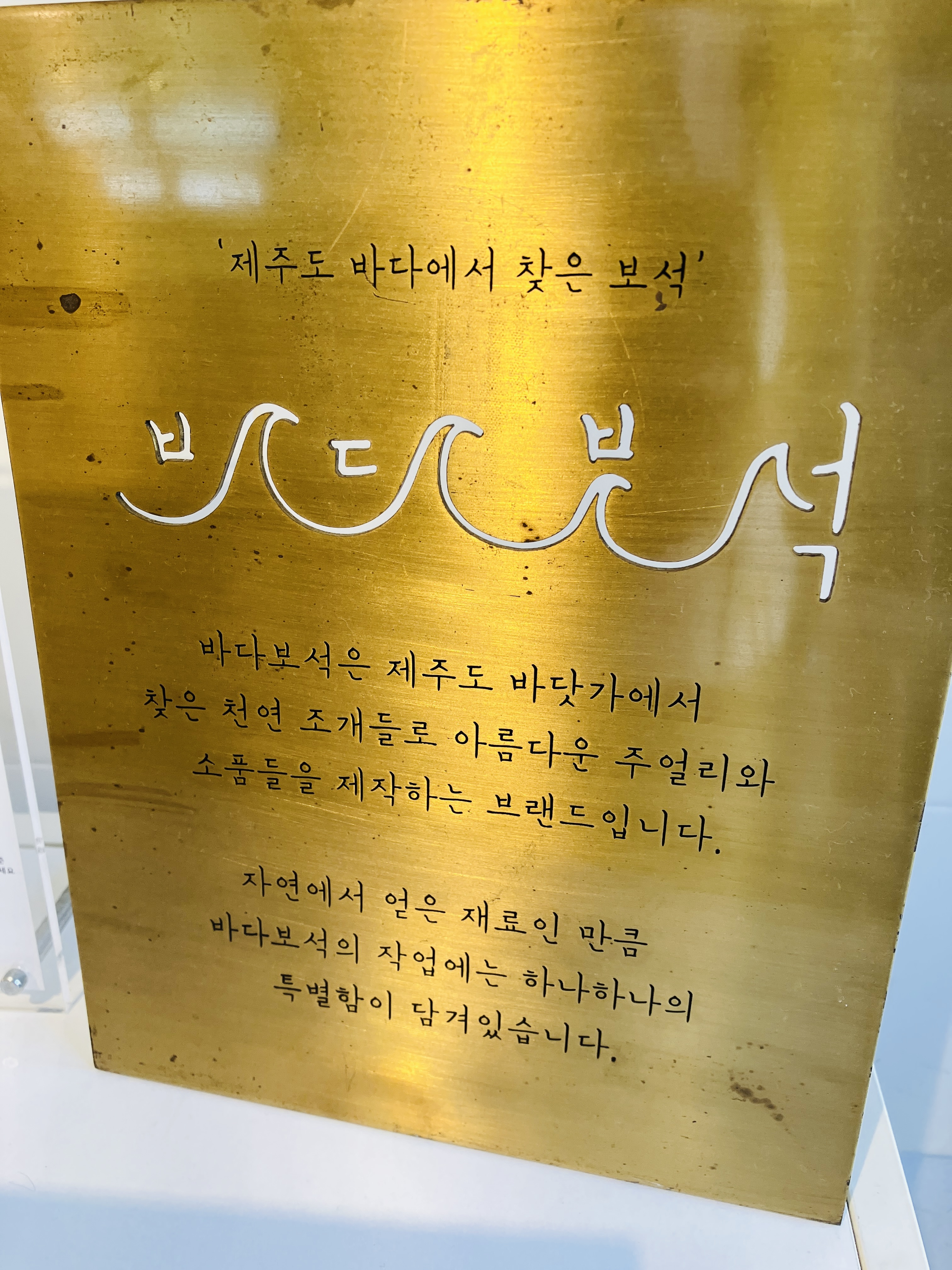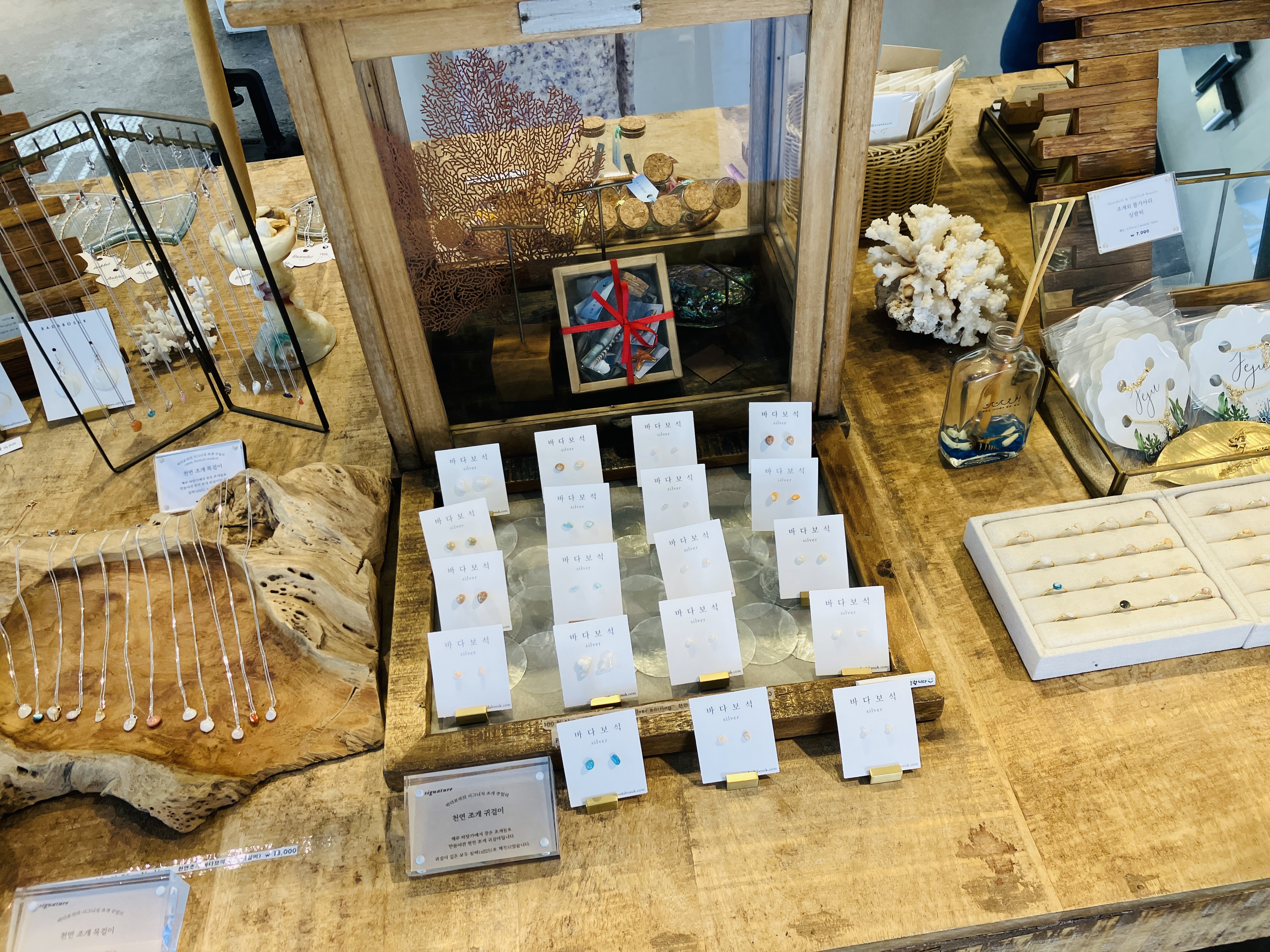 제주도 바다에서 찾은 보석. 그야말로 바다보석이다. 사실 바다보석은 새활용(업사이클링) 대표사례로 창업강의 때 소개하곤 했다. 예전에는 해변에서 수거한 유리조각으로 새활용 소품을 만들어서 해양 오염을 줄이는데 기여하고 독특한 제품을 만드는 곳으로 알고 있다. 요즘은 바닷가에서 얻은 천연재료를 다양하게 활용하는 듯하다.