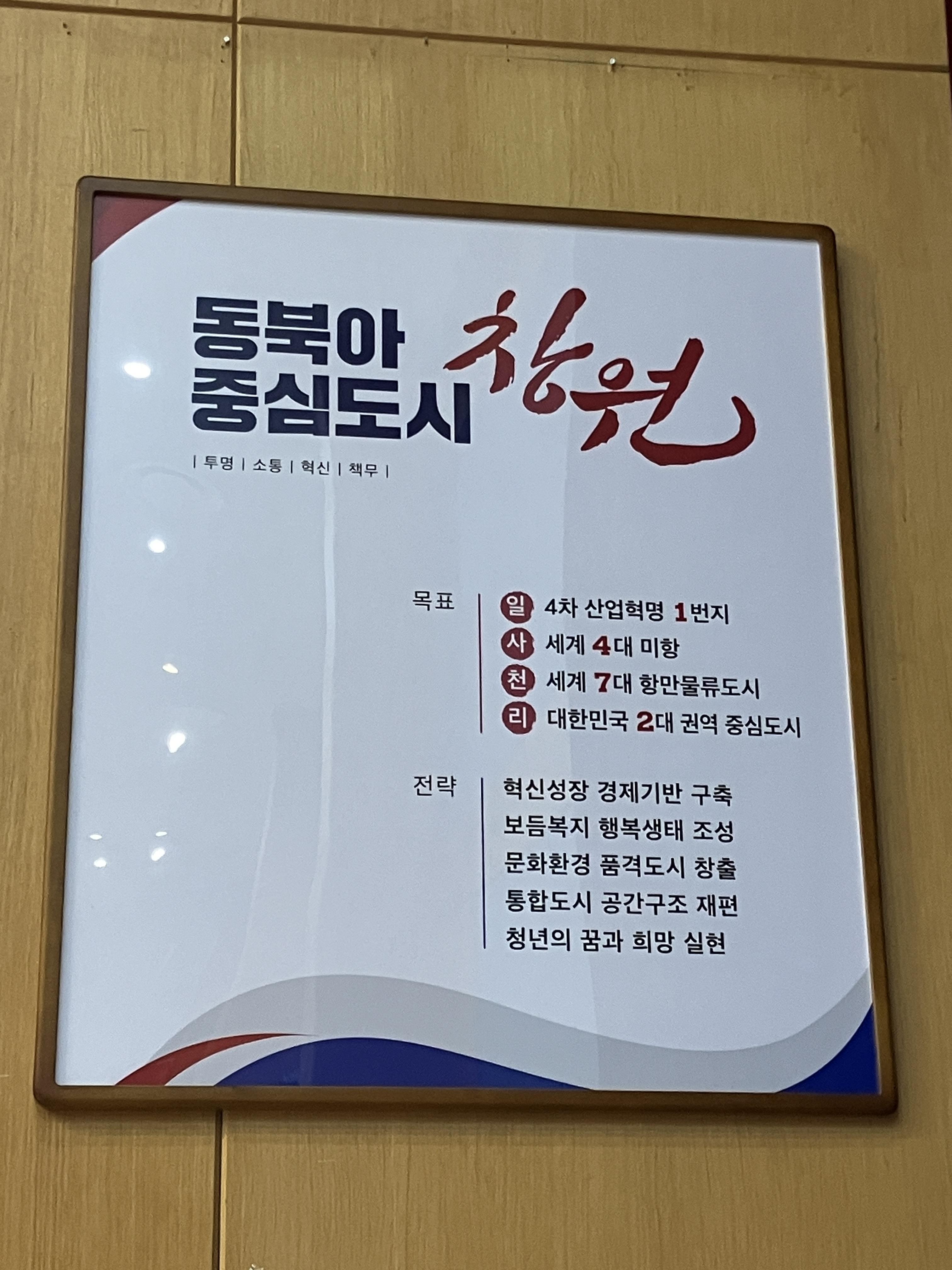 창원특례시의 4대 목표는 '일사천리'. 4차 산업혁명 1번지, 세계 4대 미항, 세계 7대 항만물류도시, 대한민국 2대 권역 중심도시. 깔끔하게 잘 지은 듯하다.
