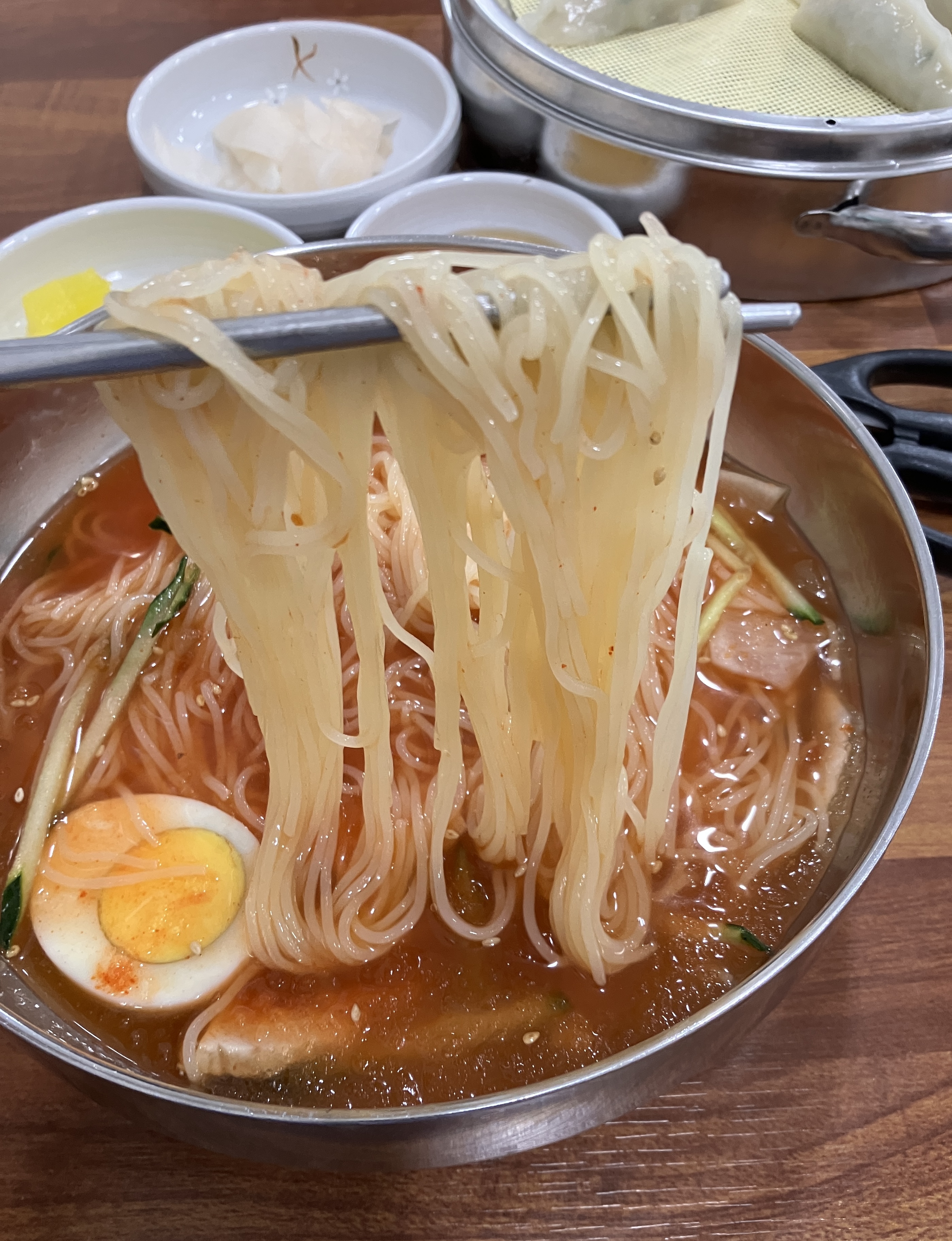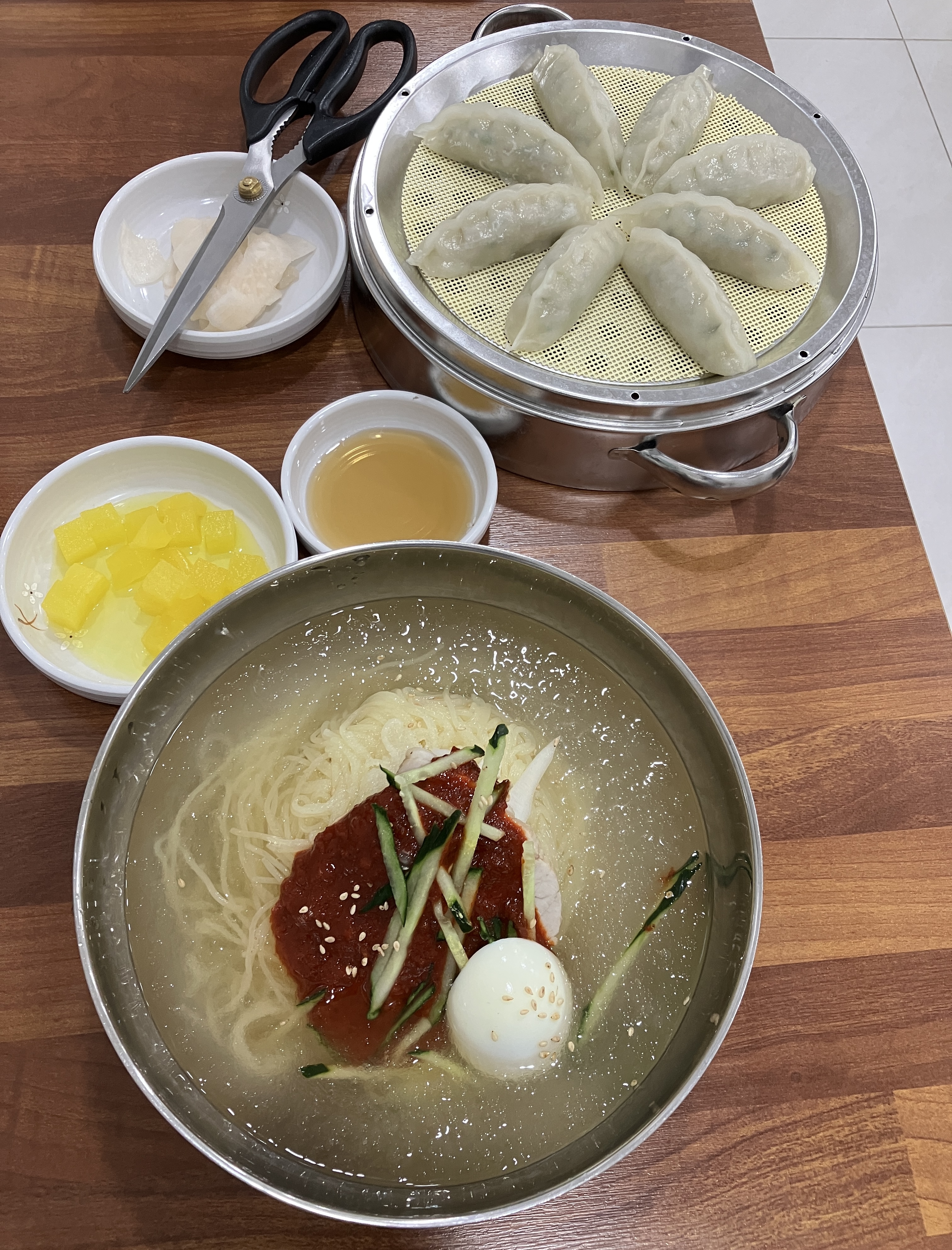 빠르게 나온 물밀면과 만두.