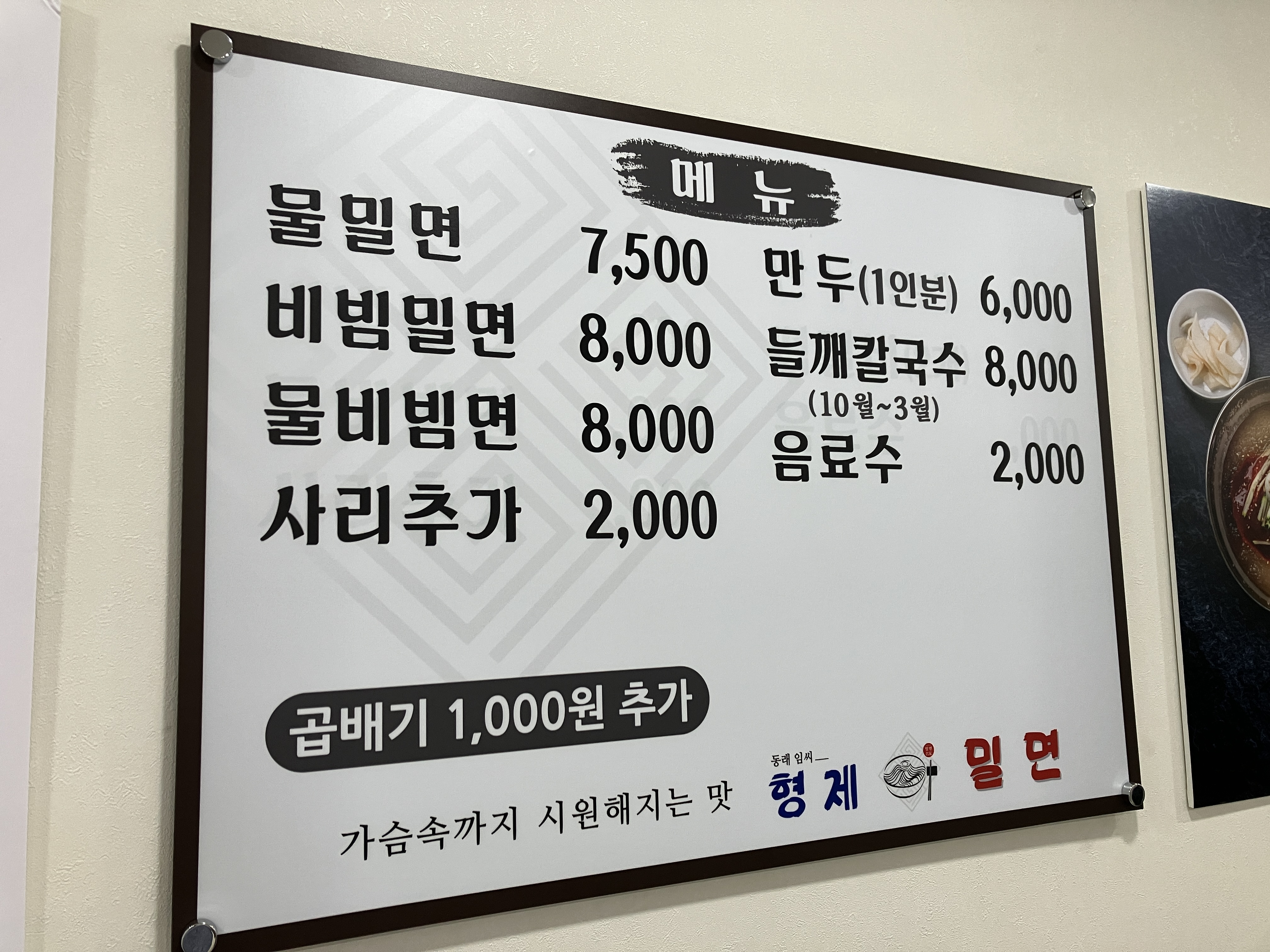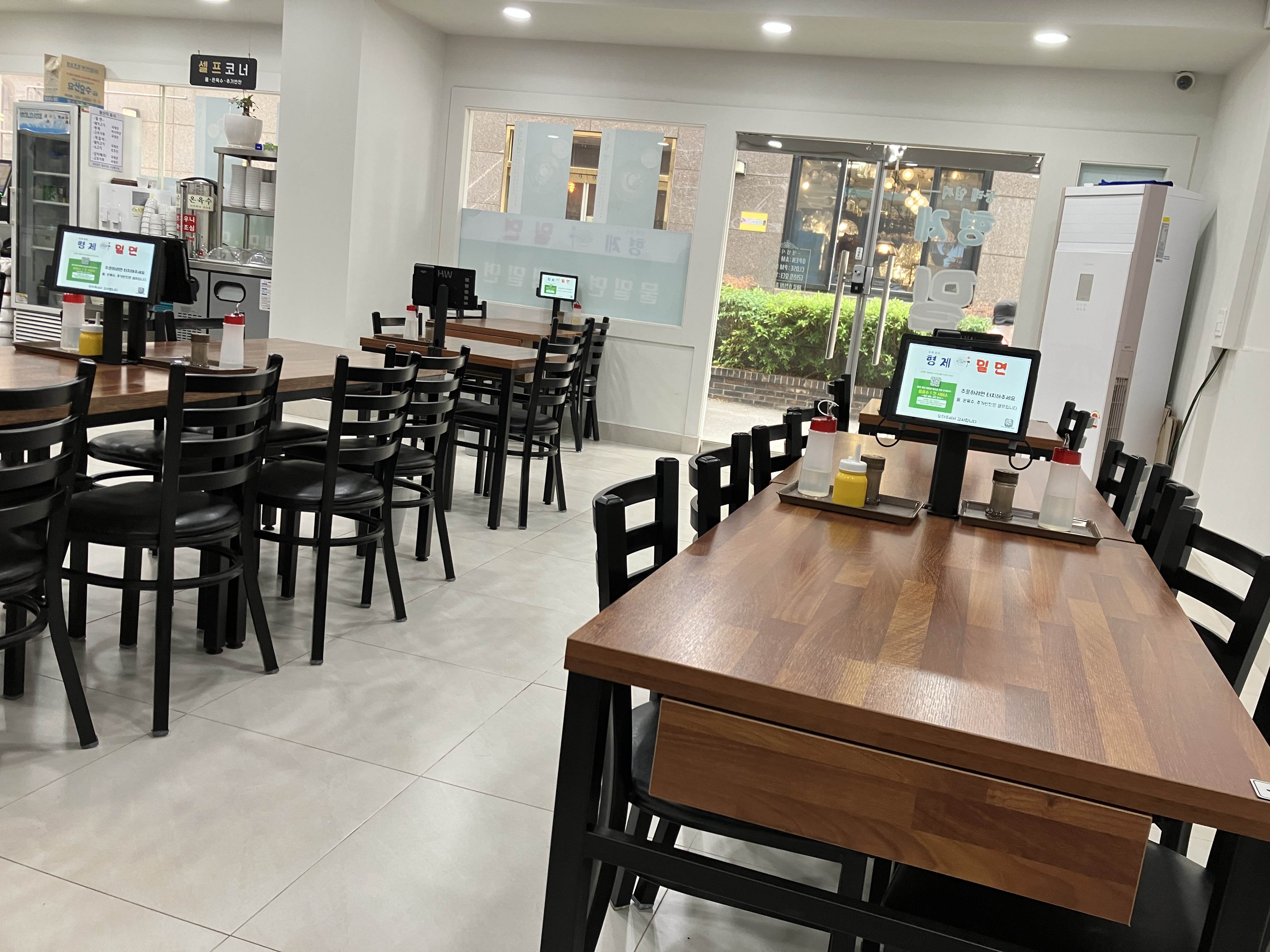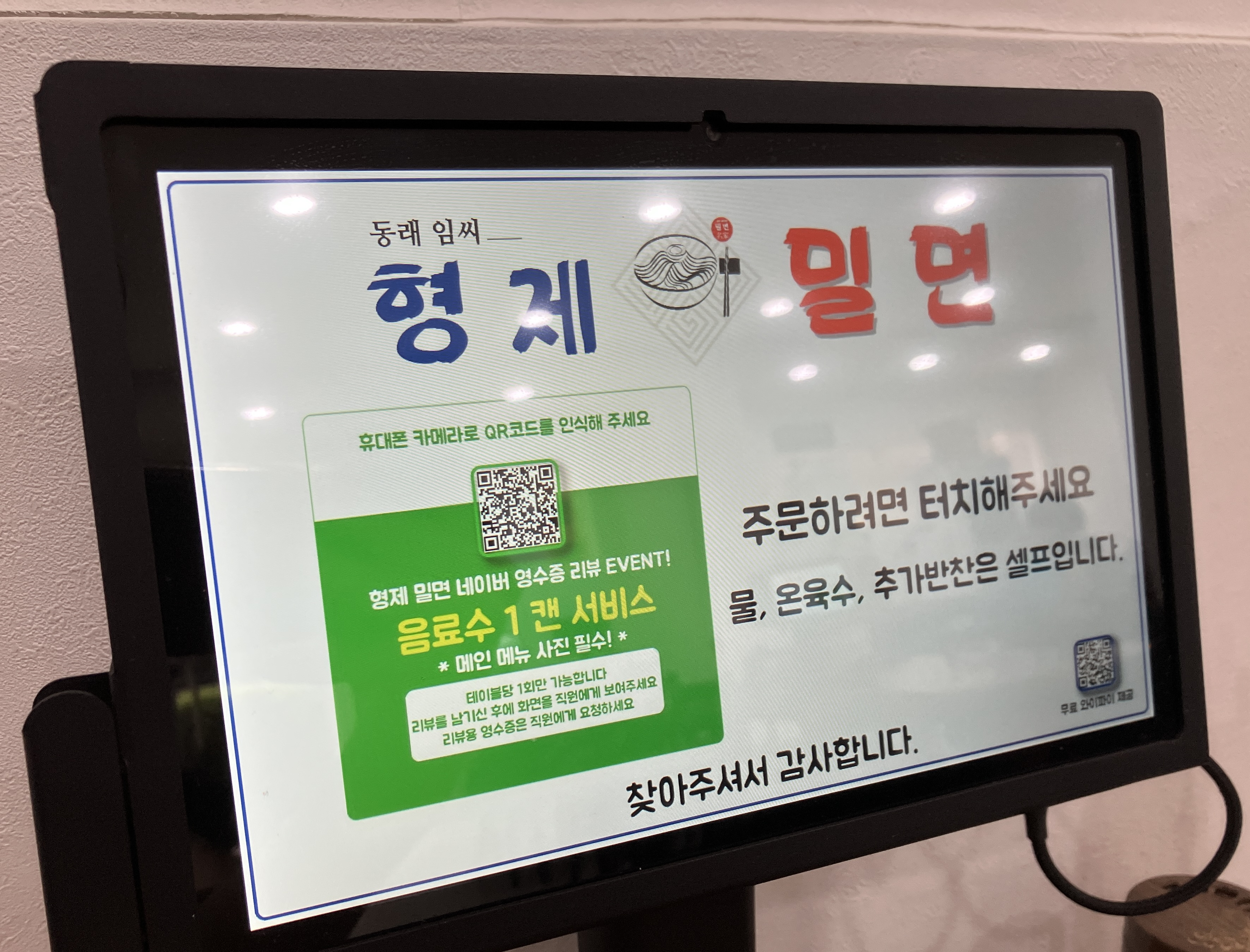 온육수 한잔하면서 기다렸다. 개인적으로 단말기로 주문하고 결제하는 걸 선호한다. 형제밀면은 키오스크로 주문하고 결제는 계산대에서 따로 한다.