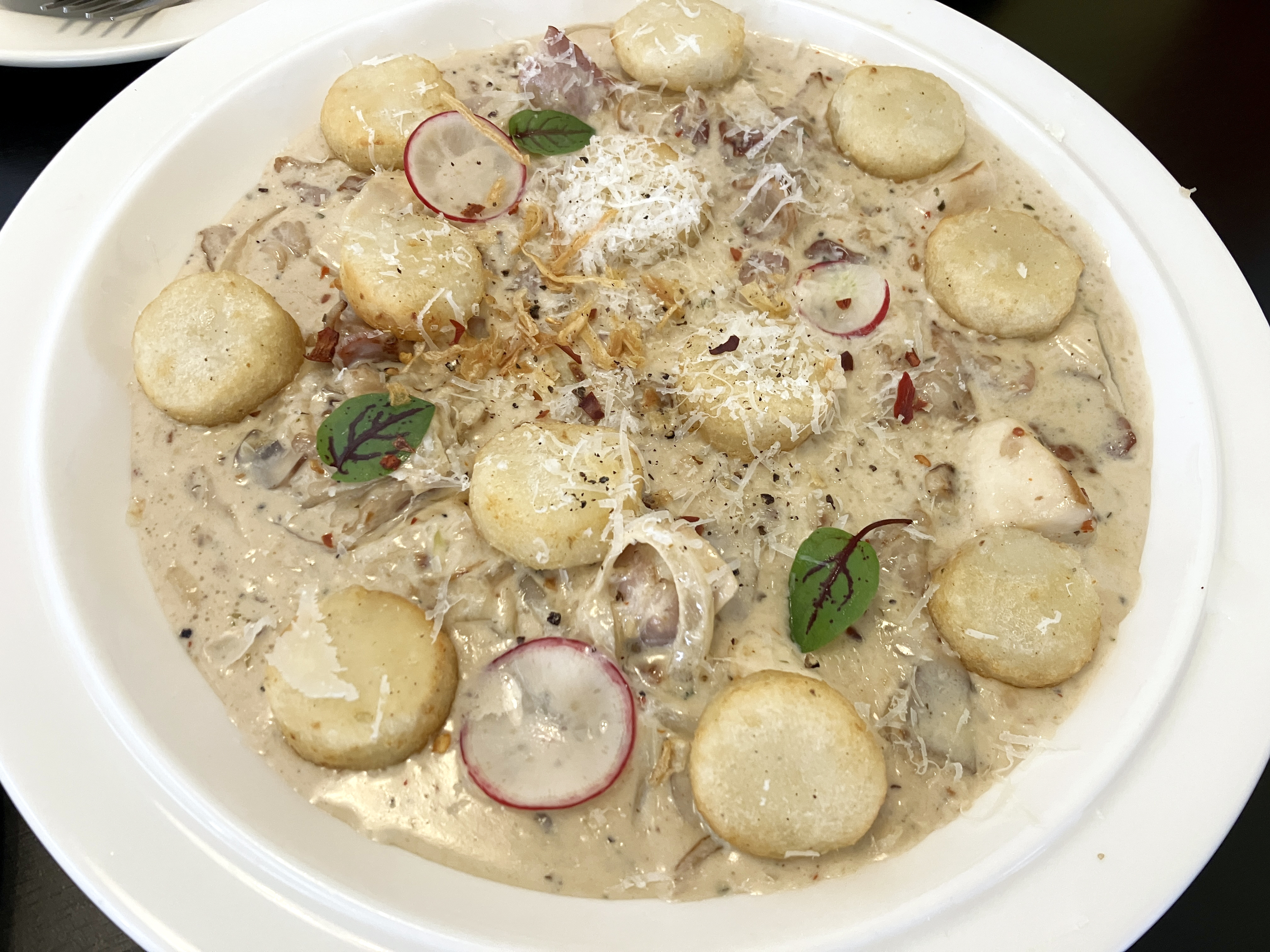 나는 아니, 우리는 이곳의 크림 뇨끼를 좋아한다. 쏘풀 때부터 그렇다.