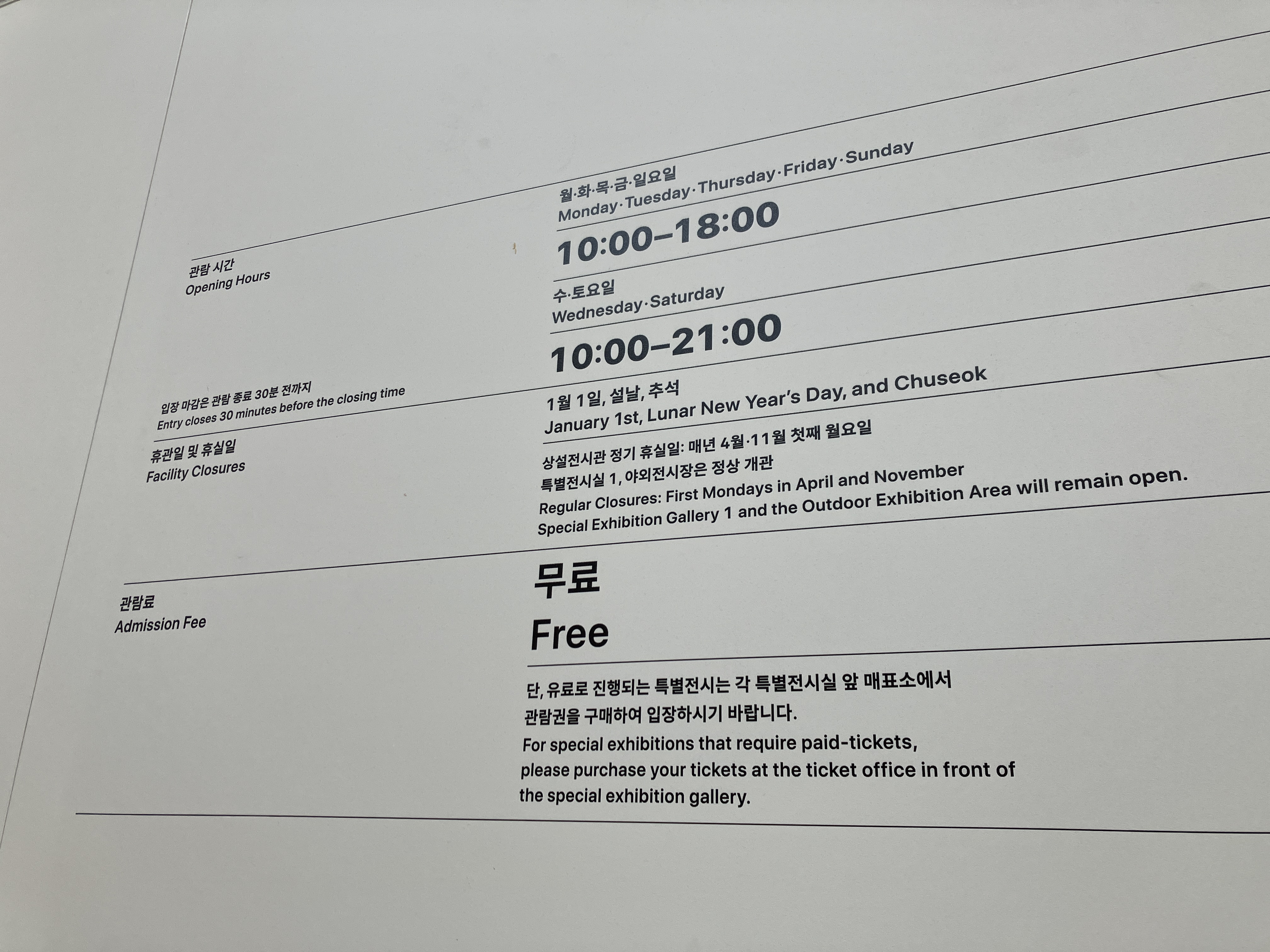 국립중앙박물관의 관람료 유료화를 검토한다는 이야기를 들었는데 굿즈나 식음료 판매로 충분히 수익을 낼 수 있을 것 같다. 국민뿐 아니라 외국인까지 많은 사람들이 관람할 수 있도록 개방하는 것도 대한민국의 국격이라고 생각한다. 어쨌거나 유료가 되더라도 꼭 다시 방문하고 싶은 곳이다.