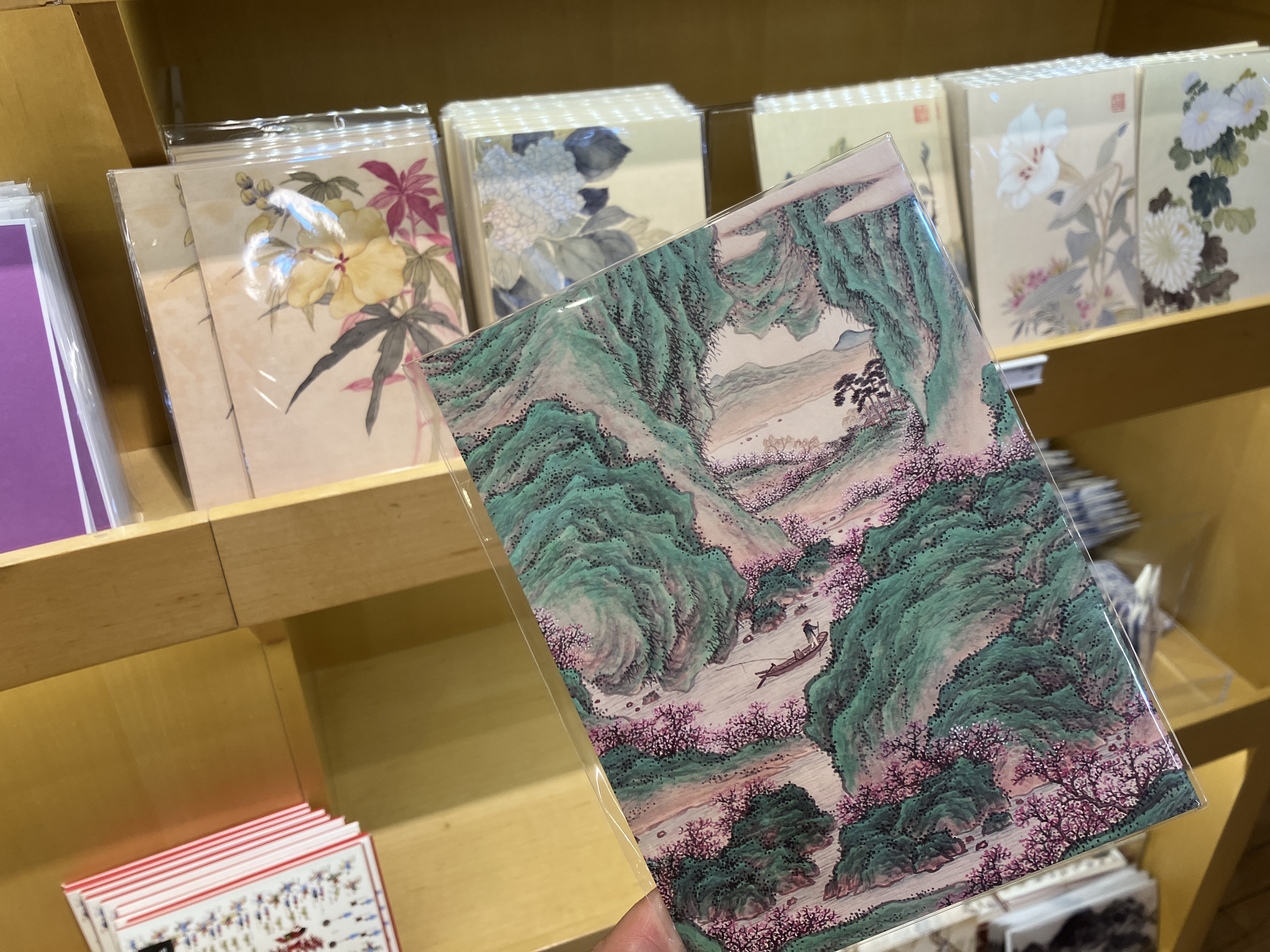 이곳에서 구입한 한 가지. 요즘 그림이 좋다. 산과 꽃이 있고 물도 있으니 무릉도원이구나. 이 그림이 마음에 들어서 액자로 만들 생각에 구입했다. 그림은 안중식의 '배를 타고 복숭아꽃 동산을 찾아서'. 사고 싶은 굿즈는 정말 많았다.